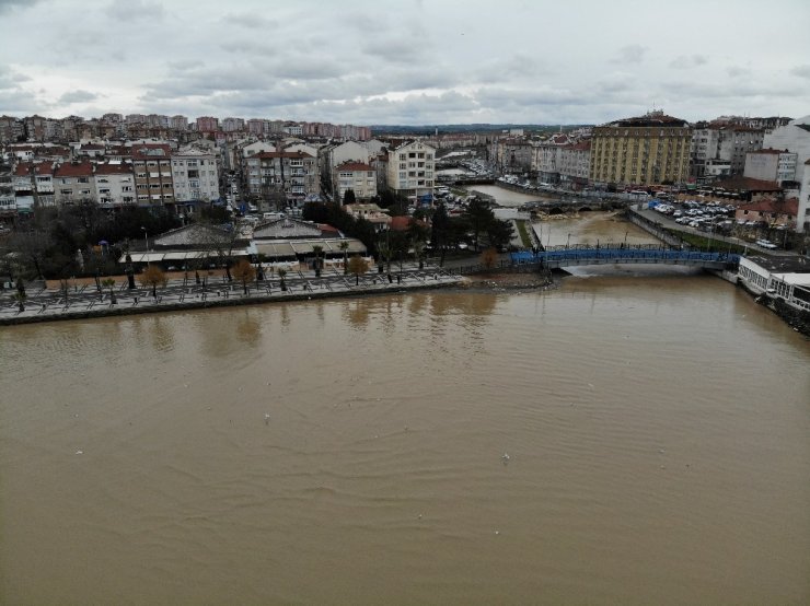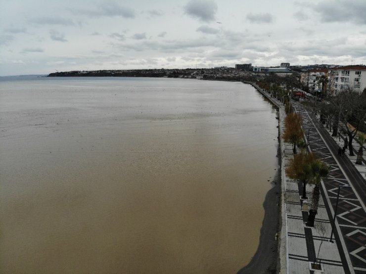 İstanbul'un Silivri ilçesinde, dün geceden beri etkili olan sağanak yağış nedeniyle derelerden akan çamurlu su, Marmara Denizi'nin rengini değiştirdi. Kahverengiye dönen denizin bir bölümü havadan görüntülendi.