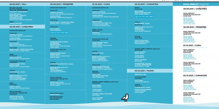 Masalı; müzik, dans ve el sanatlarıyla buluşturacak olan festivalin açılış programında özgün müziğin ilk temsilcilerinden Ezginin Günlüğü sahne alacak. Kent sakinlerine masalların büyülü dünyasına yolculuk yaptırmayı hedefleyen festivalde, uluslararası masal anlatıcılarının yanı sıra Baba Zula, İstanbul Opera Topluluğu ve Burcu Karadağ mini konserlerle katılımcılarla buluşacak.