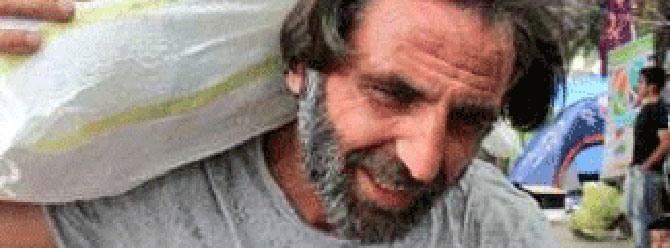 Uygun'un eylemcilere destek için gönderilen yardım çuvallarını taşırken görüntülendiği fotoğrafı Twitter'da paylaşıldı.