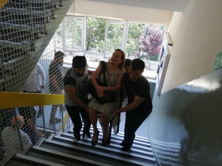 Merdivenleri çıkamayan seçmeni sandalye ile 3’üncü kata taşıdılar