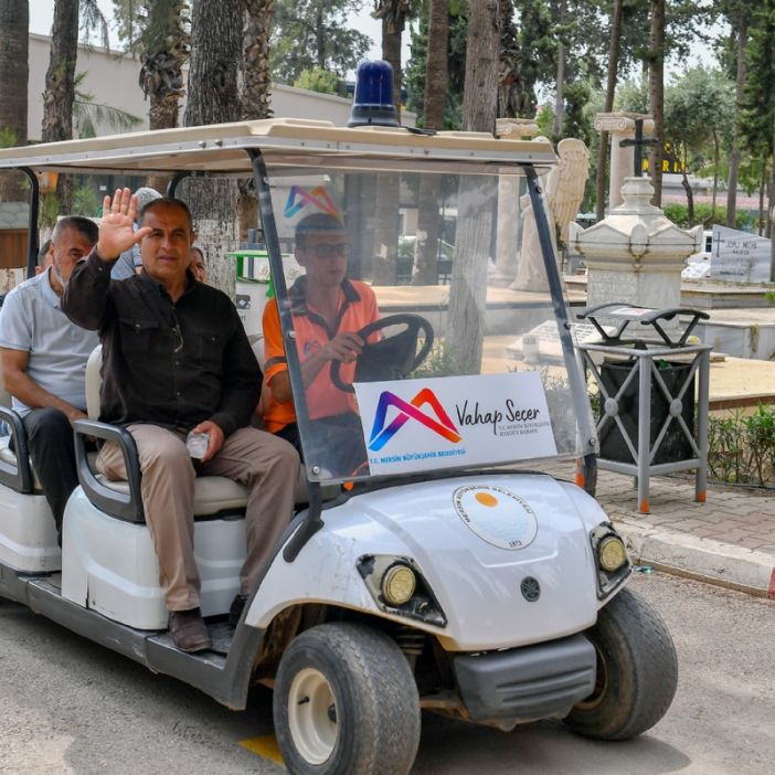 Mersin Büyükşehir Belediyesi Mezarlıklar Dairesi Başkanlığı, Ramazan Bayramı’nda kabir ziyaretlerini gerçekleştiren vatandaşları ikramlarla karşılayıp mezarlık içi ulaşımda ise vatandaşlara ring aracı hizmeti sağladı.