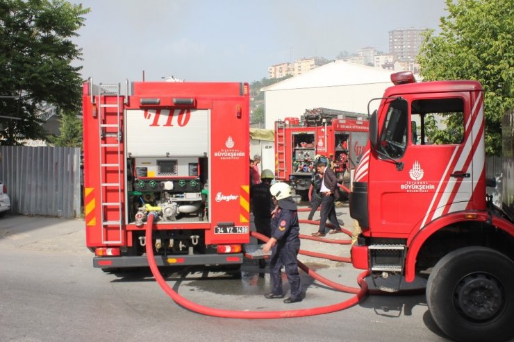 Eyüpsultan'da metro şantiye alanında boş konteynerlerde söküm çalışması sırasında yangın çıktı.