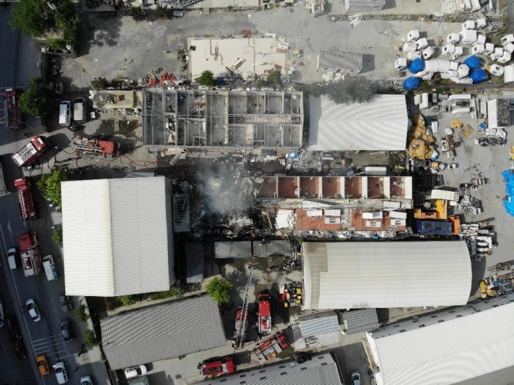 Eyüpsultan'da metro şantiye alanında boş konteynerlerde söküm çalışması sırasında yangın çıktı. Yangın itfaiye ekiplerinin müdahalesiyle büyümeden söndürüldü. İtfaiye ekiplerinin çalışması drone ile havadan görüntülendi.