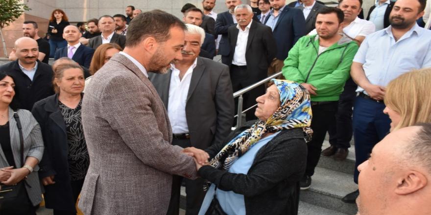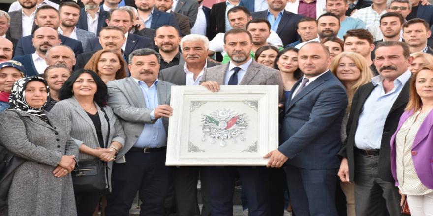Silivri Belediye Başkanı Volkan Yılmaz, duygulanarak gözyaşlarını tutamadığı konuşmasında, “MHP’nin çok kıymetli dava insanları, uzun zamandır beraber mücadele ettiğim dava arkadaşlarım hepiniz hoş geldiniz şeref verdiniz. Karşınızda MHP Silivri Belediye Başkanı olarak oturuyorum ama şunu bilmenizi istiyorum, benim olduğum yerde her birinizin olduğunu farz edin. Bu koltuk MHP’ye gönül vermiş her bir ülküdaşıma aittir. Her birinizin yapması gerekenler var, benim de belediye başkanı olarak yapmam gerekenler var. Öncelikle yapmamız gereken ülkücü vicdanı, ülkücü hukuku birbirimize karşı işletmek, ülkücü hassasiyeti korumak. Buralara çok meşakkatli yollardan gelindiğini biliyorum. Rahmetli başbuğumuz Alparslan Türkeş ve genel başkanımız Sayın Devlet Bahçeli’nin İstanbul’da bir belediye hayalini hepimiz biliyoruz. Bu belediyeyi kazanmak hem sizlere hem bana nasip oldu. 50 yıllık bir siyasi hareket, mazisinde binlerce şehidi var. Herkes kendini benim yerime koysun. Bu çok zor uzandığımız, yakaladığımız fırsatı şahsi menfaatleri öne koyarak değerlendiremeyiz. Biz burada bir fikri bir hareketi temsil ediyoruz. Bir ülkücü gibi herkese eşit mesafede olmam gereken bir görevim var. Seçim zamanında da söyledim; en çok bana arkadaşlarım kızacak. Elimden geldiğince sizi kızdırmayacağım, küstürmeyeceğim. Omuzumuzdaki çok ciddi bir yük var, bu yükü taşımamız lazım. Bu yükü taşırken 50 yıllık harekete leke düşürmeden, gölge düşürmeden yapmamız lazım. Şahsımı önceleyecek hiçbir icraat içinde olmayacağım. Para pul ile makam ile hiçbir işim yok. Ülkücü vicdanı temsil etme noktasında hizmet edeceğim. Hepinize sonsuz teşekkür ederim” dedi. MHP İlçe Başkanı Zafer Yalçın, ziyarette Başkan Yılmaz’a Osmanlı Devlet Arması’nın bulunduğu bir tablo ve Kadın Kolları Başkanı Sema Arcan da bir kalem hediye etti. Ziyaret, belediye binası önünde çekilen hatıra fotoğraf ile sona erdi.