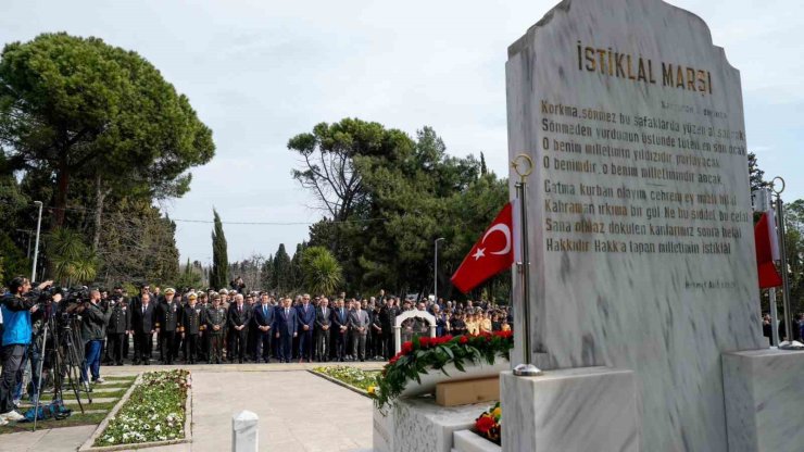 Milli Şair Mehmet Akif Ersoy, İstiklal Marşı'nın kabulünün 104'üncü yıl dönümünde kabri başında anıldı.