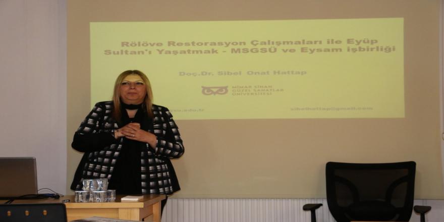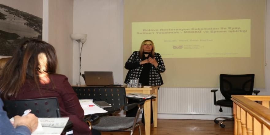 Eyüpsultan Araştırma Merkezi’nin ev sahipliğinde gerçekleştirilen Akademik Buluşmalar’da, Doç. Dr. Emine Sibel Hattap, “Rölöve Restorasyon çalışmaları ile Eyüpsultan’ı yaşatmak - MSGSÜ ve EYSAM işbirliği” adlı sunumunu gerçekleştirdi.