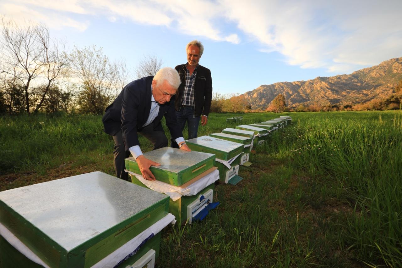 Verimli toprakları, başat ürünleri ile bir tarım kenti aynı zamanda dünyanın ve Türkiye’nin en önemli çam balı üretim merkezi olan Muğla’da, Büyükşehir Belediyesi arıcılara her alanda destek olmaya devam ediyor. Özellikle son iki yılda yaşanan büyük orman yangınlarından olumsuz etkilenen arıcıların yanında olan Muğla Büyükşehir Belediyesi temiz petek projesi, arı sütü, arı keki gibi birçok projeyle arıcıları destekliyor. Büyükşehir Belediyesi bugüne kadar 103 arıcıya arı sütü ve ana arı üretim seti, 51 arıcıya 4892 adet arı keki, 29 arıcıya 1170 adet polen tuzaklı kovan tabanı, 27 arıcıya 1040 kg temel petek desteklemesi, büyük bal mumu güvesine karşı 237 arıcının 167 bin 889 adet peteği -30 derecede şoklama desteği sağladı.