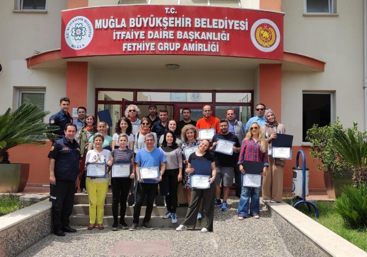 Muğla’da yaşanan itfai olaylarda kısa sürede vatandaşların yanında olan Muğla Büyükşehir Belediyesi İtfaiye teşkilatı, kentin doğal afetlere hazırlıklı olması için talep eden vatandaşlara ilgi ve becerilerine göre eğitim vererek gönüllü itfaiyeci olmalarını sağlıyor. Büyükşehir Belediyesi gönüllü itfaiyecilik yönergesinin hayata geçmesiyle çalışmalarını hızlandırdı ve Fethiye’de başvuruda bulunan 21 gönüllüye 22 Mayıs-31 Mayıs tarihleri arasında 40 saat A Sınıfı Gönüllü İtfaiyeci Eğitimi verdi.