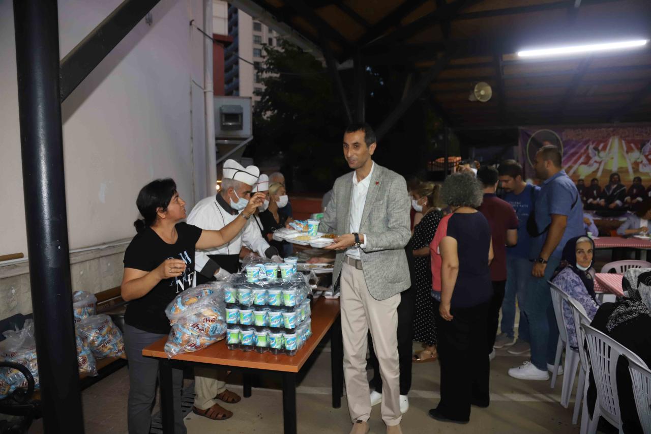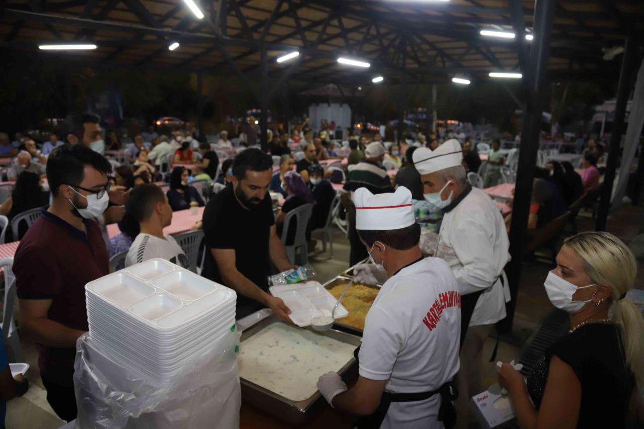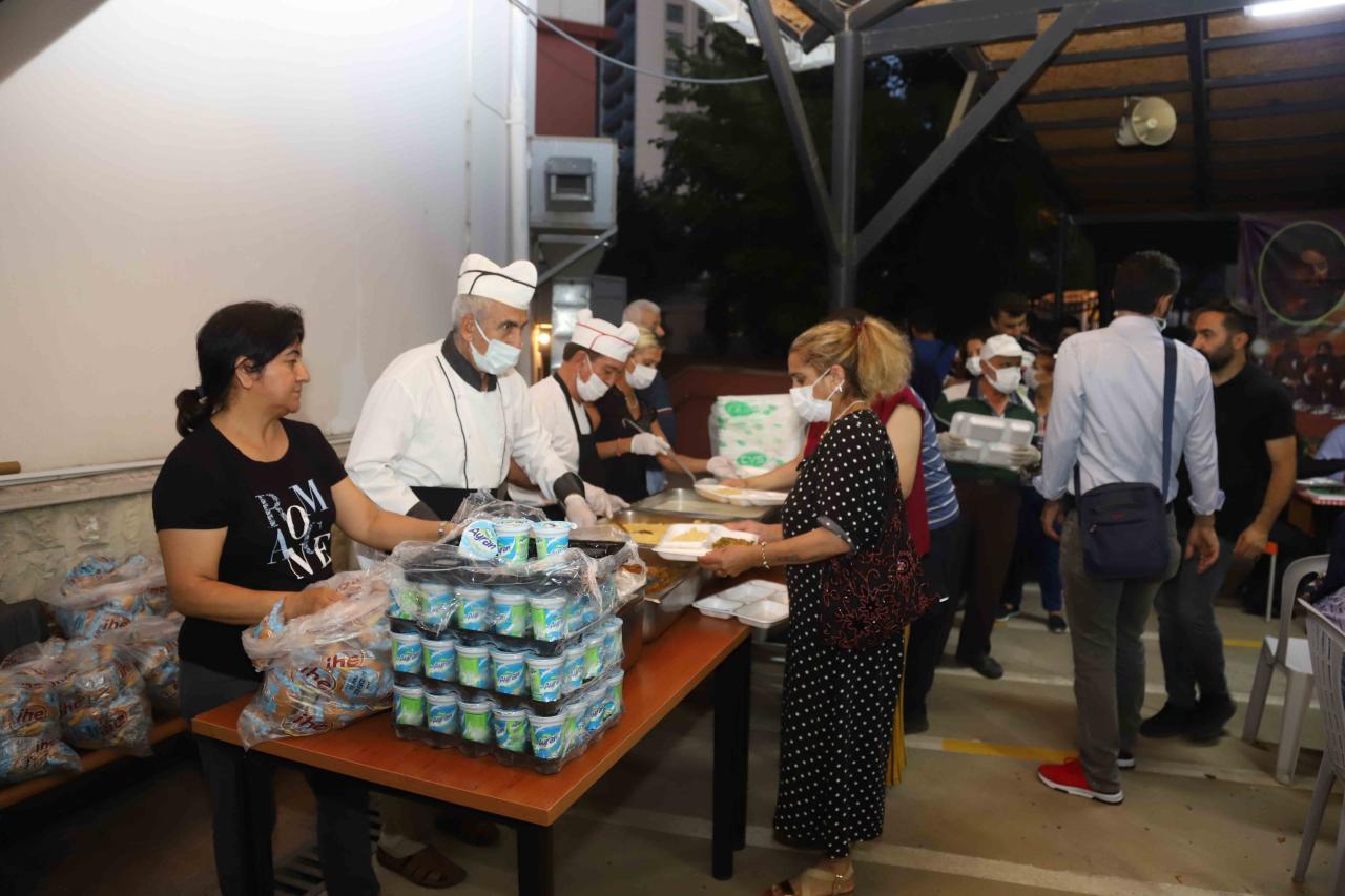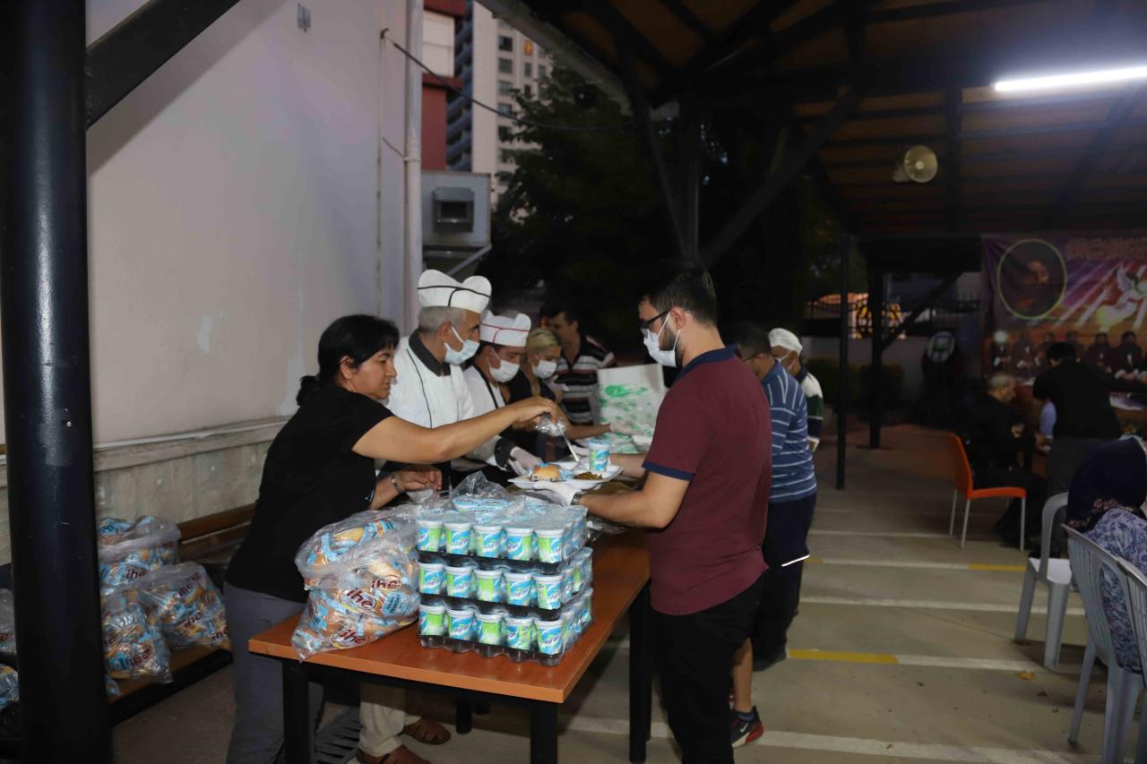 Sıcak hava nedeniyle Kartal Cemevi’nin bahçesinde açık havada verilen oruç açma yemeğinde, Muharrem Ayı ve Yas-ı Matem Orucu’nun anlamıyla ilgili konuşma yapıldı ve tutulan oruçların kabul edilmesi için dua edildi.