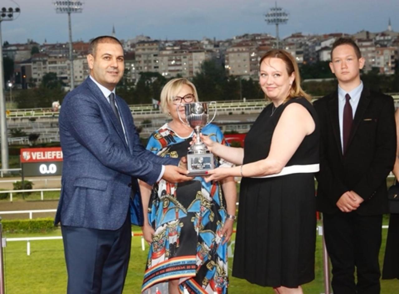 Yarışın ardından düzenlenen törende, koşuyu kazanan kısrağın sahibi Yakup Elğaç'a kupasını, merhum Mustafa Alver'in torunu Perver Alver Doğuş verdi.