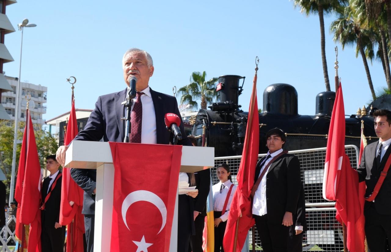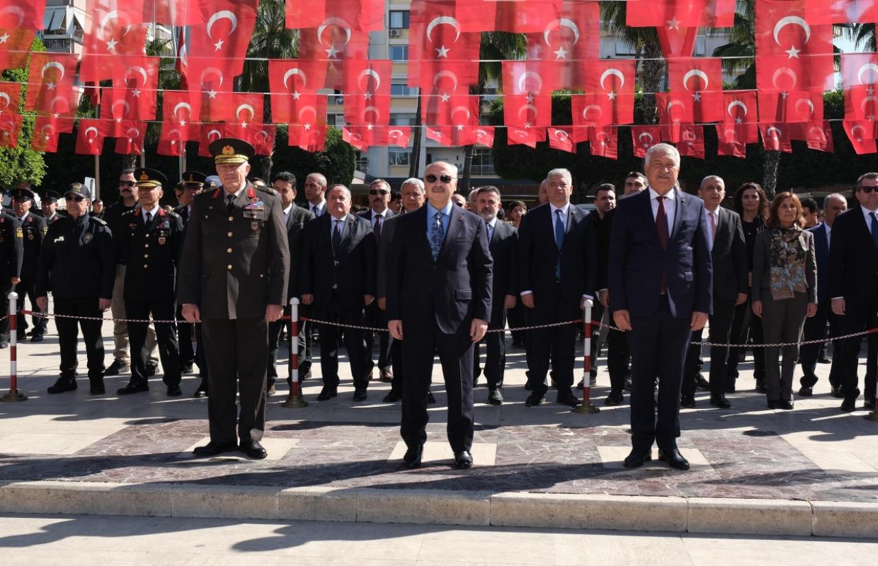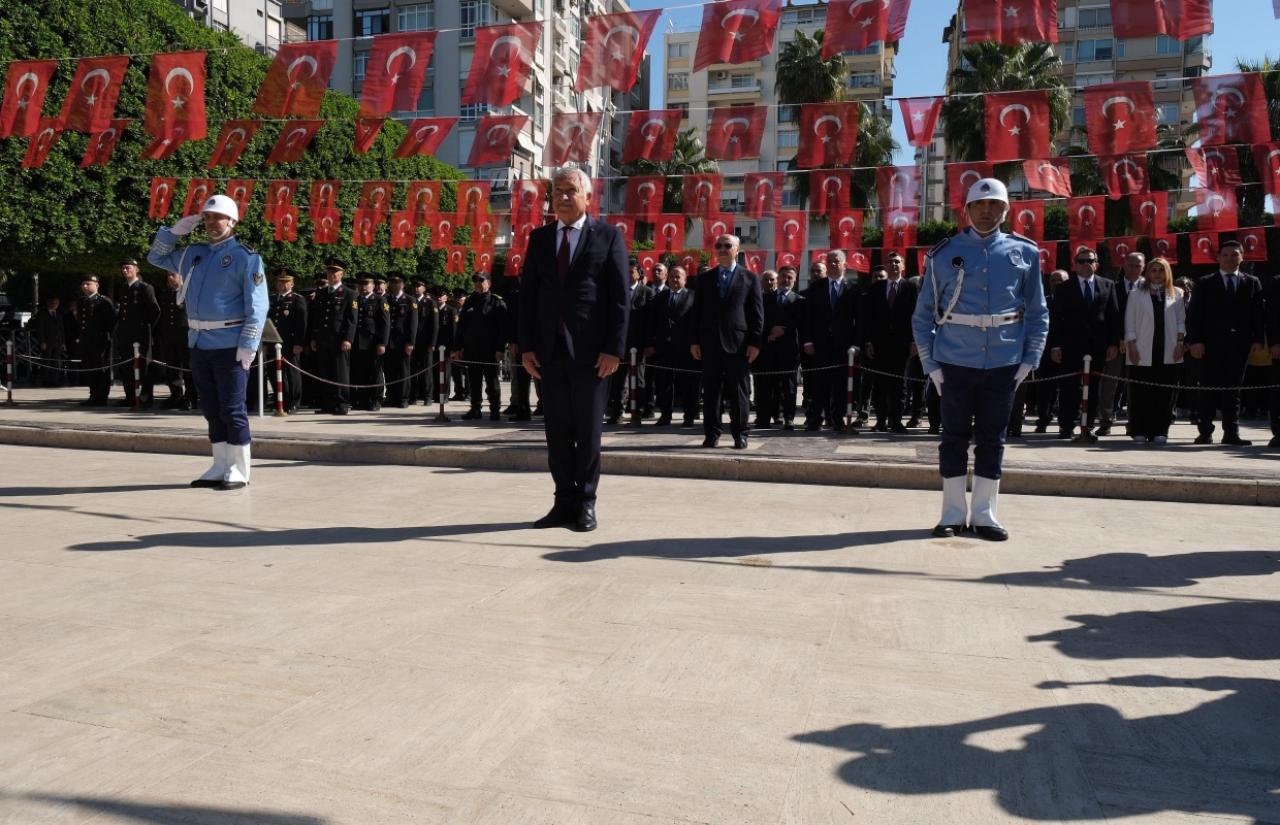 Atatürk Parkı’ndaki Atatürk Anıtı önünde düzenlenen çelenkkoyma törenine; Adana Valisi Yavuz Selim Köşger, Adana Büyükşehir BelediyeBaşkanı Zeydan Karalar, 6. Kolordu ve Garnizon Komutan Yardımcısı TuğgeneralOzan Nas ile kentin sivil ve asker erkanı, gaziler, öğrenciler katıldı.