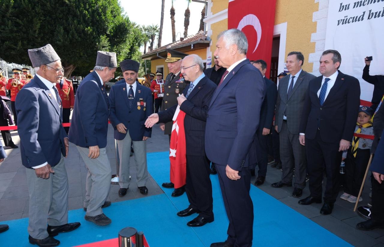 Adana Tren Garı’nda süren programda, Mustafa KemalAtatürk’ün 14 Mart 1923’te trenle Adana’ya gelişi temsili olarak canlandırıldı.Trenden inen bir gazi, Vali Yavuz Selim Köşer’e Türk bayrağı verdi.