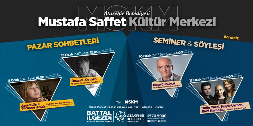 Ataşehir Belediyesi’nin kültür sanat etkinlikleri yeni yılda da tüm hızıyla devam ediyor. 2017’nin Ocak ayında düzenlenecek; Uluslararası Ataşehir Klasik Müzik Festivali, 6. Ataşehir Çocuk Tiyatroları Festivali, 5. Ataşehir Çocuk Kitapları Günleri, Mete Çubukçu ve Ayşe Kulin ile söyleşi, Mehmet Erdem ve Jehan Barbur konserleri Ataşehirlileri bekliyor.