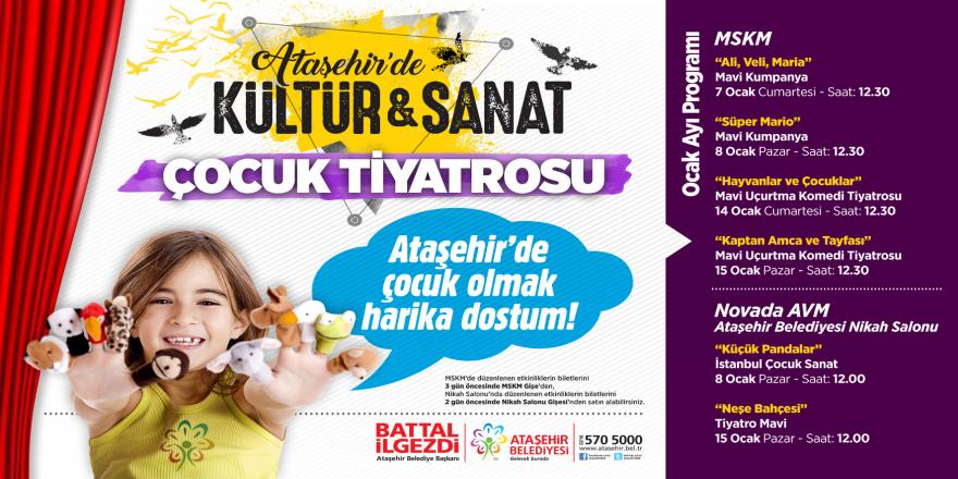 Her sene olduğu gibi bu sömestr tatilinde de Ataşehirli çocuklar için eğlenceli ve öğretici bir program hazırlayan Ataşehir Belediyesi, Ocak ayında “6. Ataşehir Çocuk Tiyatroları Festivali” ile “5. Ataşehir Çocuk Kitapları Günleri”ni düzenleyecek. Sömestr boyunca çocuklar; atölyeler, tiyatrolar ve sinemalar ile dopdolu bir tatil geçirecek.
