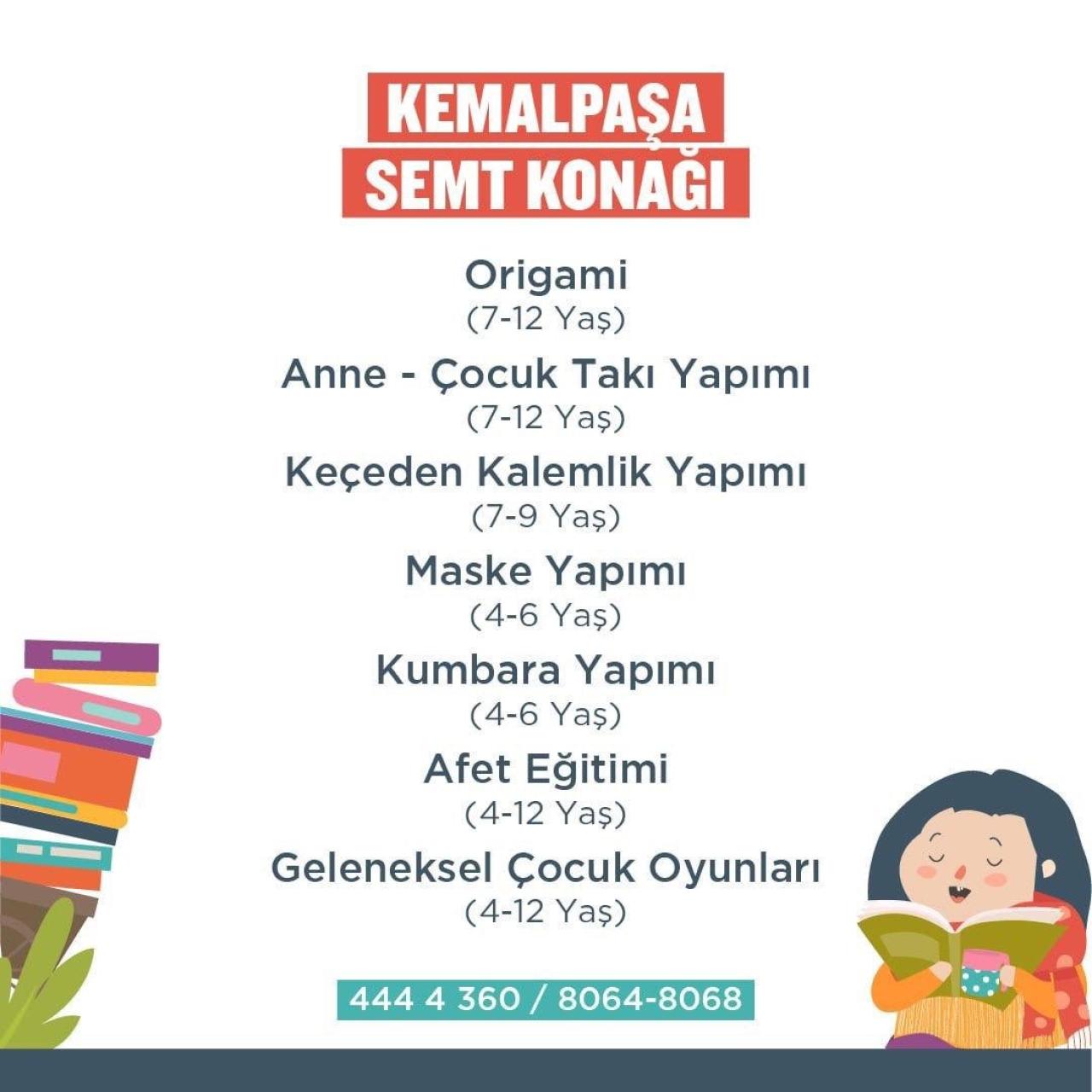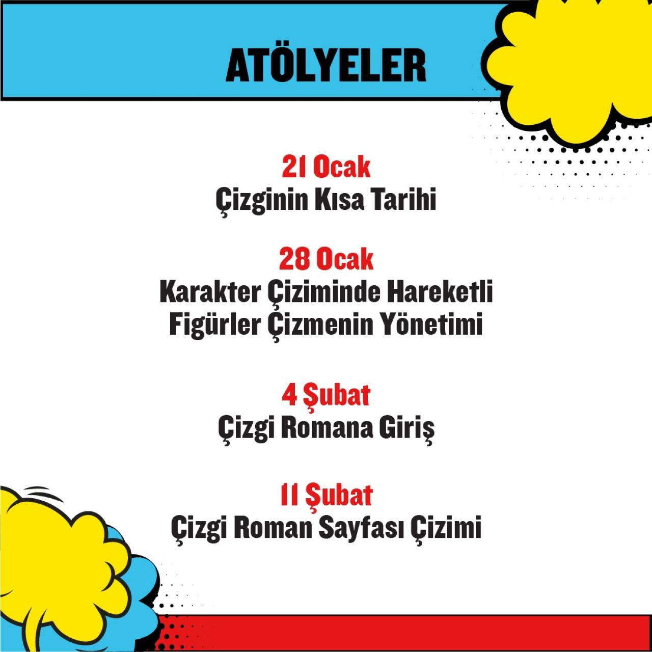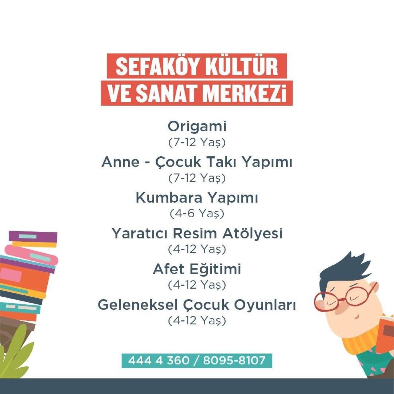 Sefaköy, Cennet, Atakent Kültür ve Sanat Merkezi ve Kemal Paşa Semt Konağında ise origami, anne-çocuk takı yapımı, afet eğitimi, yaratıcı resim, maske yapımı, keçeden kalemlik yapımı, ritim atölyesi ve Deniz Coşkun ile Çizgi Roman atölyesi gibi çeşitli eğitici ve öğretici atölyeler düzenlenecek.