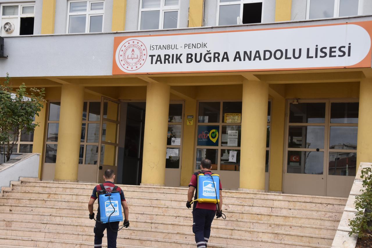 2024-2025 eğitim ve öğretim yılı 9 Eylül Pazartesi günü başlayacak. Pendik’te yaklaşık  145.000  öğrenci ders ziliyle birlikte yeni eğitim dönemine merhaba diyecek. Okulları fiziki olarak yeni eğitim ve öğretim dönemine hazırlayan Pendik Belediyesi temizlik çalışması başlattı. Bu kapsamda belediye ekipleri sınıfları, kütüphaneleri,  lavaboları temizlerken diğer yandan da dezenfekte ediyor.  Aynı zamanda okulların bahçeleri süpürülüp yıkanıyor.