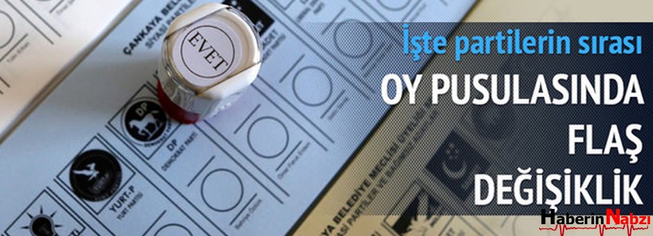 HÜDA-PAR ve TKP’nin açıklamasından sonra YSK'nın kurayla belirlediği partilerin oy pusulasındaki yerleride değişmiş oldu. Buna göre oy pusulasında Milliyetçi Hareket Partisi 16., Halkların Demokratik Partisi 17., Cumhuriyet Halk Partisi 20., Adalet ve Kalkınma Partisi 21. sırada yer alacak. Doğruyol Partisi ise listenin bir numarası oldu.