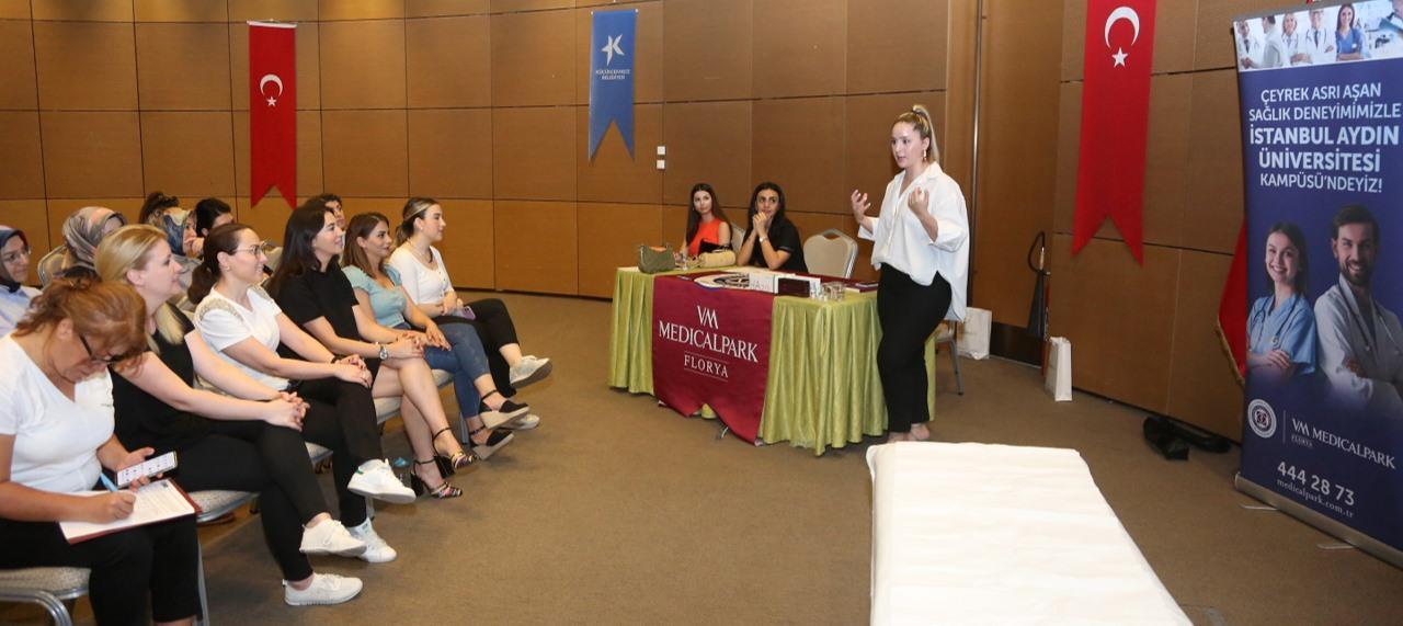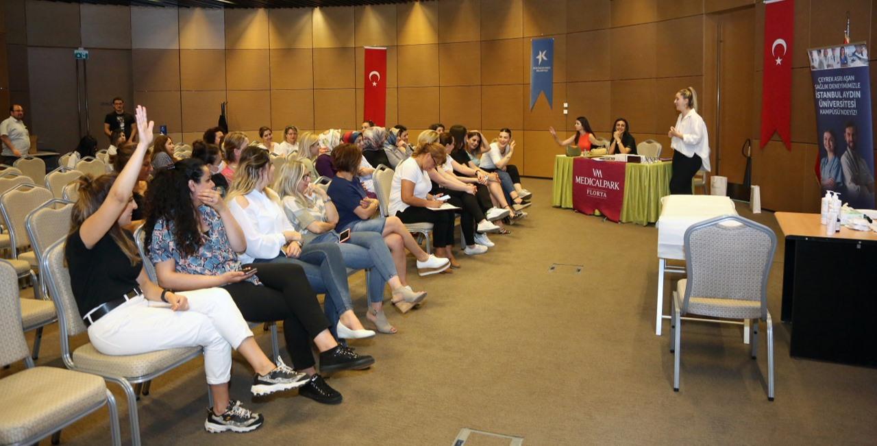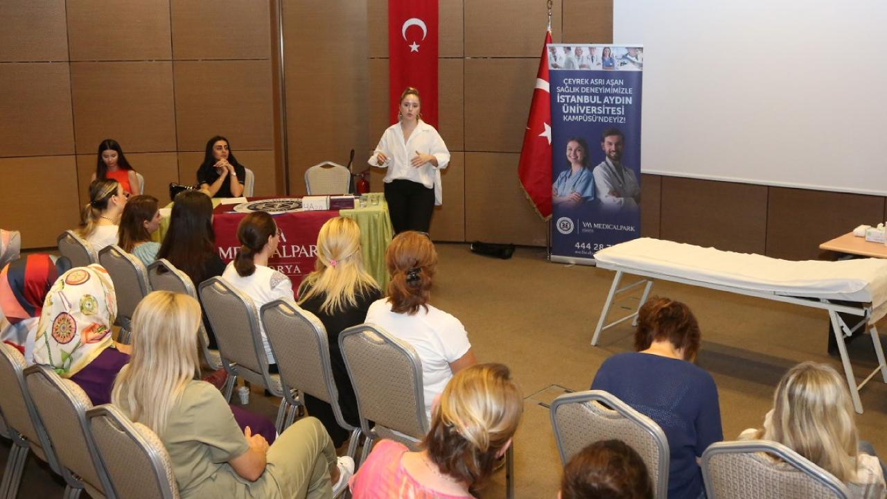 İnsan Kaynakları ve Eğitim Müdürlüğü tarafından düzenlenen eğitimde, Medikal Estetik Uzmanı Doktor Gülşah Çağla Çakır ve Estetiysen Dilan Kanat; botoks, dolgu, mezoterapi ve cilt bakımı uygulamaları hakkında bilgi verdi.
