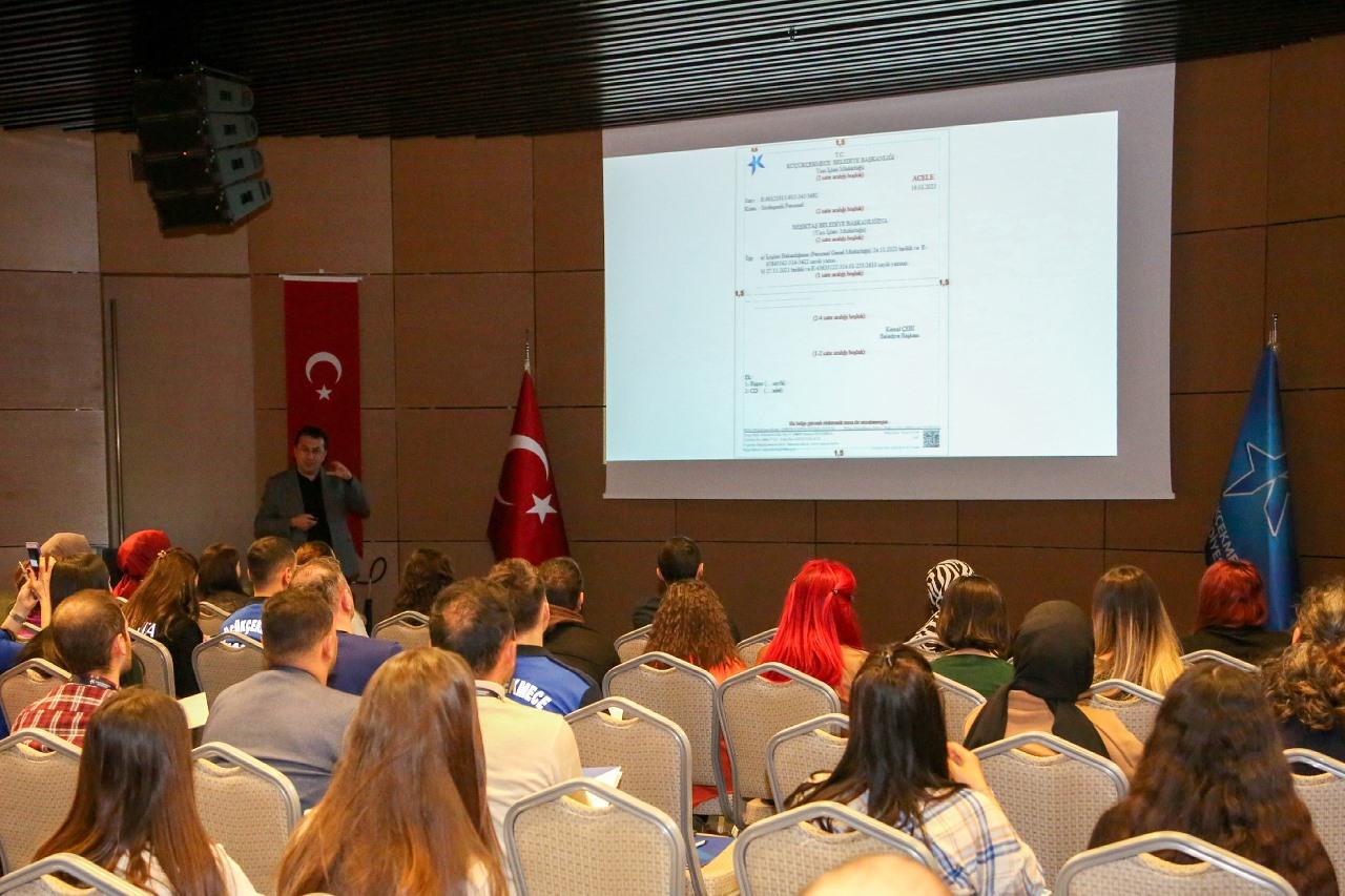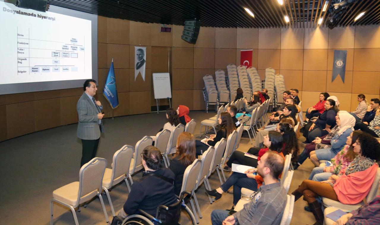 Eğitmen Niyazi Çiçek tarafından verilen ve iki gün süren eğitimde; resmi ve etkili yazışma kuralları, elektronik belge yönetiminde etkili dosyalama teknikleri ve standart dosya planı gibi konular ayrıntılı olarak ele alındı.