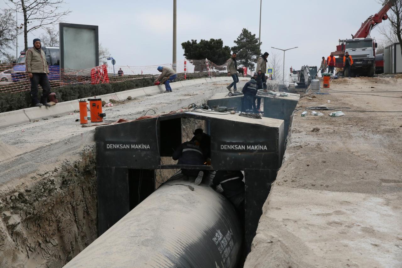 İvedik ile Polatlı ilçesi arasında 2020 yılının 29 Ekim Cumhuriyet Bayramı’nda başlatılan ana isale hattı yapım çalışmalarında final müjdesi artık çok yakın. Şu sıra İvedik İçme Suyu Arıtma Tesisi içindeki debimetre bağlantısı ve bulvar yatay delgi önü tahliye vana bağlantısı yapılıyor. Öte yandan 2 bin 500 metreküp su kapasiteli Polatlı Kuşçu Mahallesi DY-2 Su Deposu’nun betonarme imalatı bitirildi ve mekanik imalata geçildi. Yine 2 bin 500 metreküp su kapasiteli Polatlı Kargalı Mahallesi DY-3 Su Deposu’nun betonarme imalatları ve Kuşçu Mahallesi Polatlı Terfi Merkezi imalatları devam ediyor.