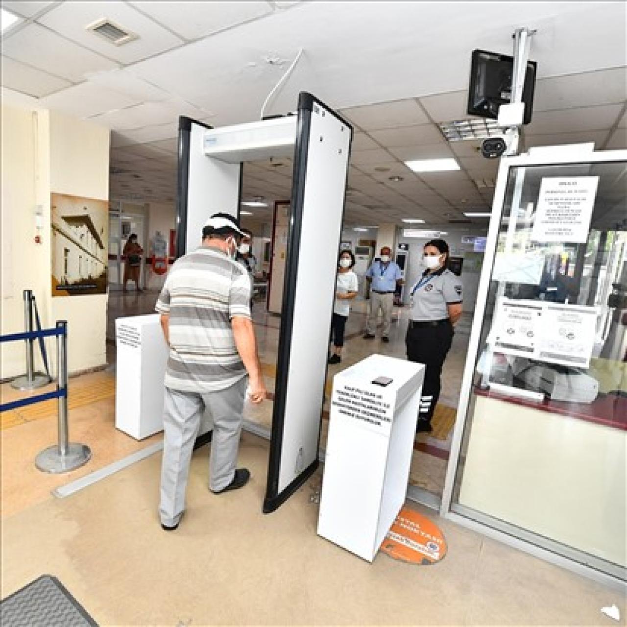İzmir Büyükşehir Belediyesi Eşrefpaşa Hastanesi sağlıkta şiddetin önlenebilmesi için güvenlik seviyesini arttırdı. Hastanenin girişlerine metal dedektörler yerleştirildi. Sistem üzerinde belirlenenden fazla metal yoğunluğu bulunan yurttaşları tespit edecek ve ardından güvenlik personeli müdahale edecek.