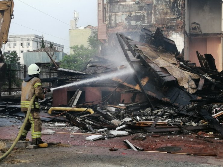 Samatya’da kül olan tarihi bina, ekiplerce kontrolü bir şekilde yıkıldı