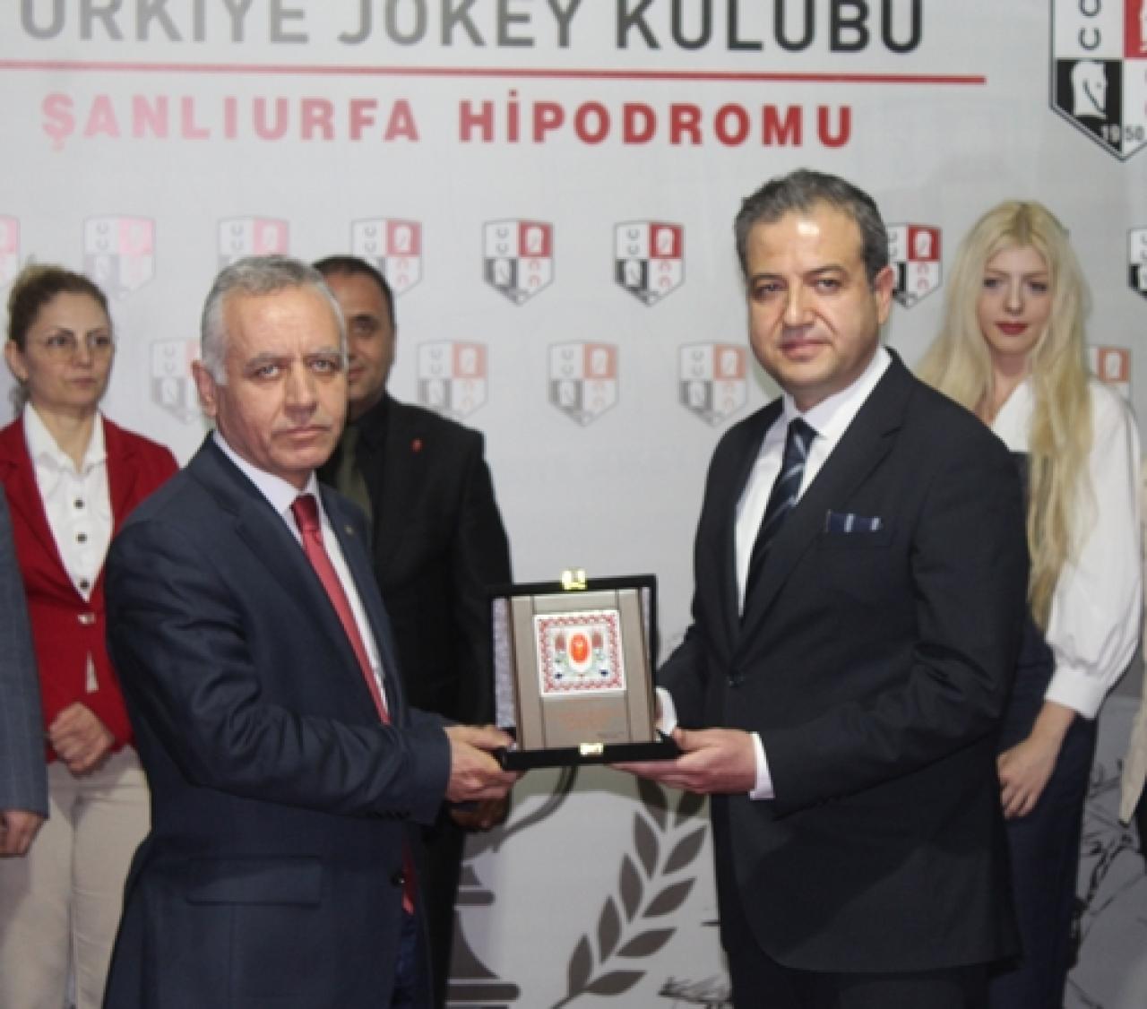 Şanlıurfa İl Tarım ve Orman Müdürü Mehmet Salih Söğüt, günün anısına Şanlıurfa Hipodrom Müdürü Eyyüp Ege'ye plaket verdi.