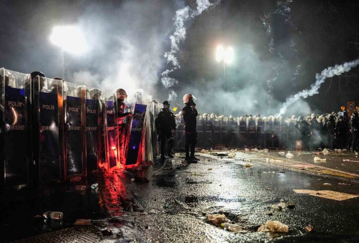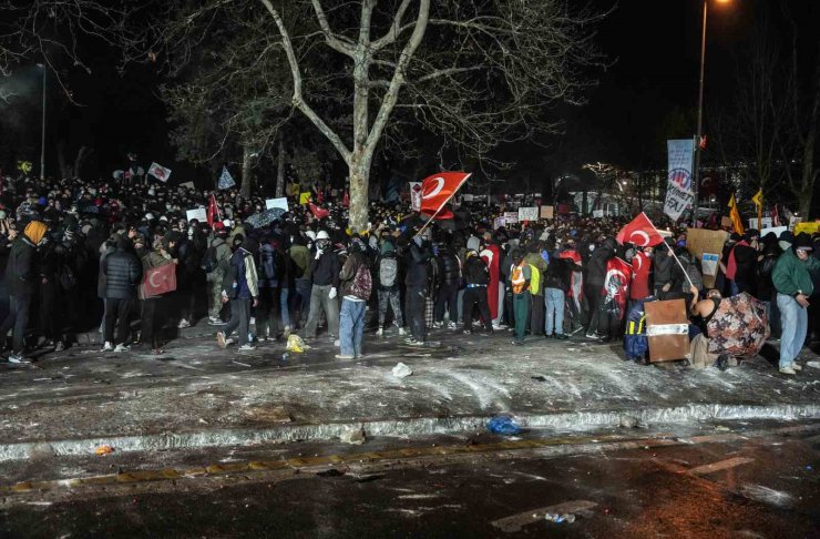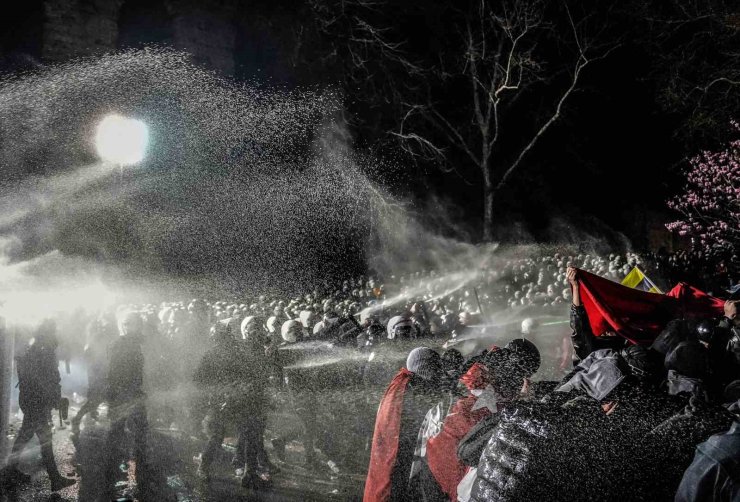 İBB Başkanı Ekrem İmamoğlu'nun da tutuklandığı "yolsuzluk ve terör" soruşturmalarını protesto amacıyla toplanan bir grup, Saraçhane'den Taksim'e yürümek istedi. Bozdoğan Kemeri önünde bekleyen çevik kuvvet polisine su şişesi ve havai fişek atan gruba polis ekipleri müdahale etti. Müdahalenin ardından grup ara sokaklara dağıldı.