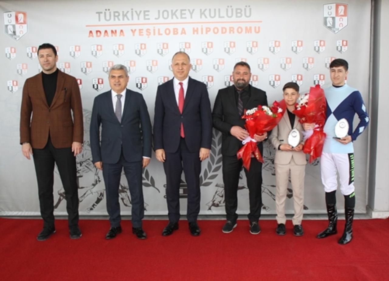 Yarış sonrası düzenlenen törende Sarıçam Belediye Başkan Yardımcısı Lütfi Doğan, kazanan atın sahibi Sedat Yıldırım'a plaket ve çiçek takdim etti.