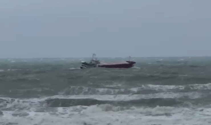İstanbul Sarıyer Kilyos'da olumsuz hava şartları nedeniyle kuru yük gemisi sürüklendi.