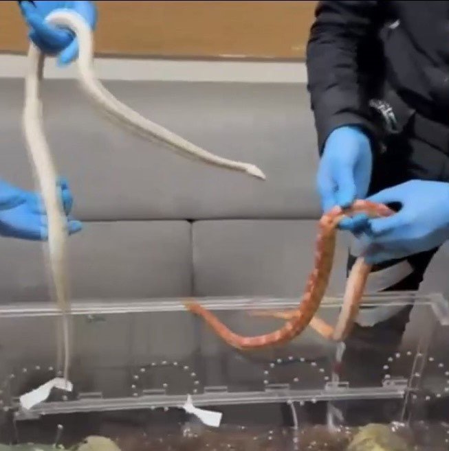 Olay, geçtiğimiz Çarşamba günü akşam saatlerinde Sarıyer Maslak'ta meydana geldi. Edinilen bilgiye göre Sarıyer İlçe Emniyet Müdürlüğü Devriye Ekipler Amirliği ekipleri, şüphe üzerine 34 EVC 099 plakalı aracı durdurdu. Araçta yapılan aramada, bagaj ve arka koltukta cam fanuslar içinde yılanlar bulundu. Durum üzerine hayvanlara el konulurken, yapılan incelemede yılanlardan birinin piton, diğer ikisinin ise zehirli Mısır yılanı (corn snake) olduğu tespit edildi. O anlar cep telefonu kamerasına yansıdı. Görüntülerde, cam fanustaki yılanlar polisler tarafından incelemesi ve teslim edilmesi yer alıyor.