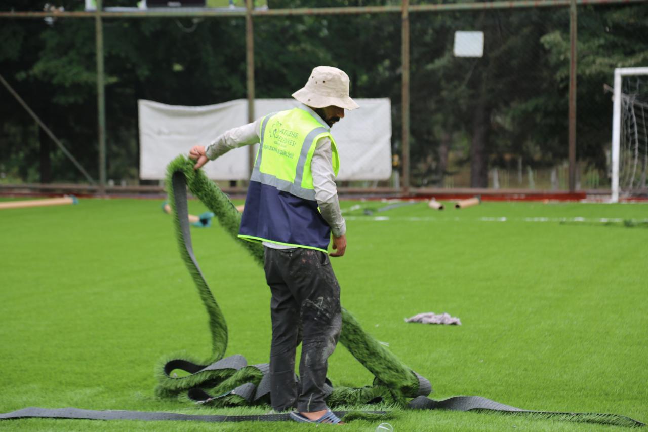 Ataşehir Belediyesi, her yaştan yurttaşın rahatça spor yapabilmesi için spor alanları yaratmaya, var olanları yenilemeye devam ediyor. Ekipler bu kez, Mevlana Mahallesi Şehit Öğretmen Hüseyin Ağırman Parkı için iş başındaydı. Parkta, 1.500,00 m² alan üzerine kurulu olan futbol sahasının zemini, sentetik çim halı malzemesi ile yenilendi.