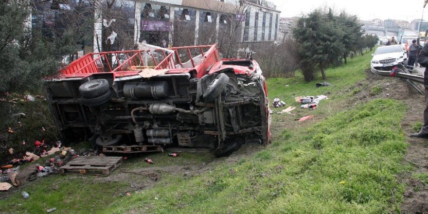 Gaziosmanpaşa TEM Otoyolu'nda lüks aracın arkadan çarpması sonucu kontrolden çıkan içecek yüklü kamyonet şarampole yuvarlandı. Sürücüler kazayı yara almadan atlatırken, TEM Otoyolu Ankara istikametinde trafik yoğunluğu yaşandı.