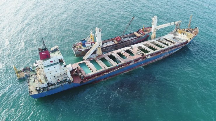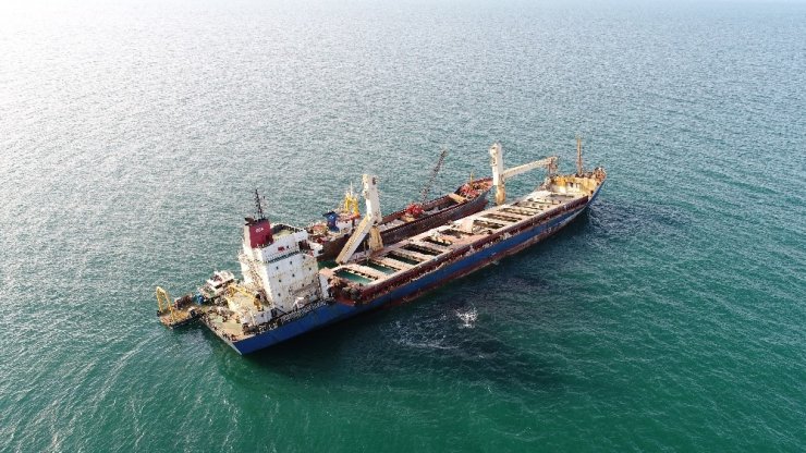 Şile’de karaya oturan gemiyi kurtarma çalışmalarında son durum havadan görüntülendi