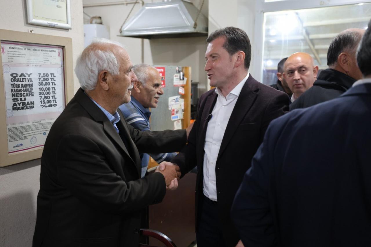 Gümüşyaka Mahallesi ziyaretinin ardından Değirmenköy’deki esnafı ve kıraathaneleri ziyaret eden Başkan ve heyeti, vatandaşların Ramazan Bayramını kutladı.