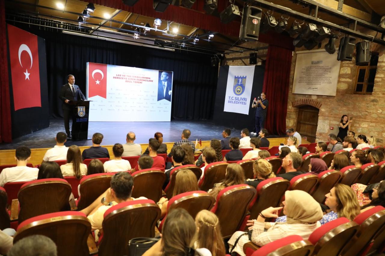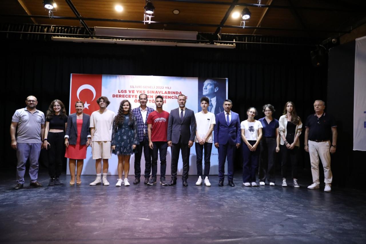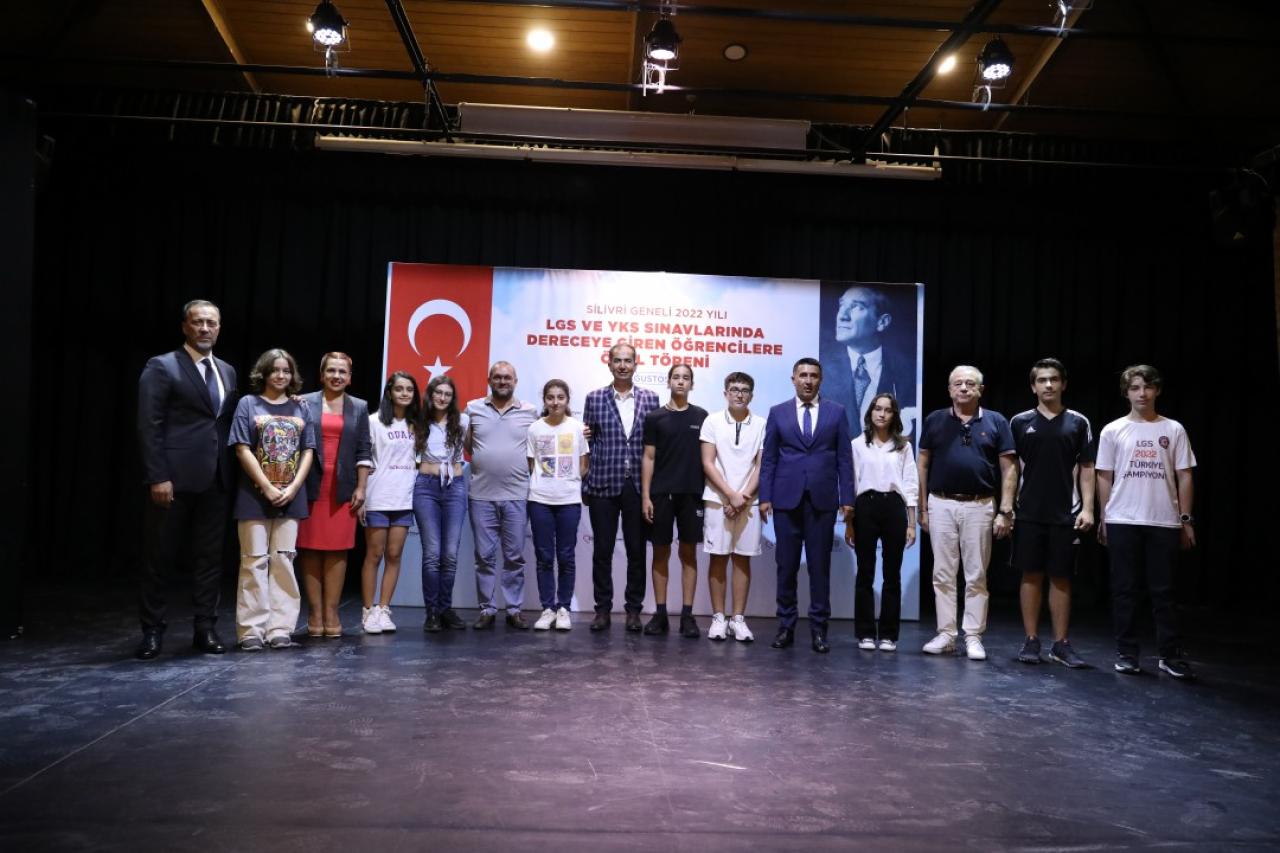 Ana sınıfından üniversiteye kadar ilçede yaşayan tüm öğrencilerin eğitimi için çalışmalarını tüm hızıyla sürdüren Silivri Belediyesi, 2022 yılı YKS ve LGS sınavlarında dereceye giren öğrencileri ödüllendirdi. Silivri’yi gururlandıran öğrenciler için Önder Yılmaz Sahnesinde bir ödül töreni düzenlendi. Silivri Belediye Meclisinin Temmuz ayı toplantısında aldığı karar doğrultusunda; sınavlarda Türkiye birincisi olan Eren Deveci ve Batuhan Yiğit Dünmez’e 2’şer adet cumhuriyet altını hediye edildi. YKS’de ilk 10’a giren Çağla Urhan, Rümeysa Didar Gelgit, Selen Dizgin, Yüksel Usanmaz, Şevval Naz Tan, Anılcan Yazıcı, Azra Çınar, Kemal Ulus, Efe Bozyel ve Sudem Türkoğlu; LGS’de ilk 10’a giren Eylül Zelal Kılıç, Elif Gümüşsoy, Tuna Akar, Nisanur Uçar, Eylül Çakan, Vedat Baran Olgun, Zeynep Yazgı Coşkun ve Zeynep Esra Ertürk’e ise 1’er adet cumhuriyet altını ödülü verildi. Öğrencilere ödüllerini Silivri Belediye Başkanı Volkan Yılmaz, İlçe Milli Eğitim Müdürü Zekeriya Artar ve belediye meclis üyeleri takdim etti.