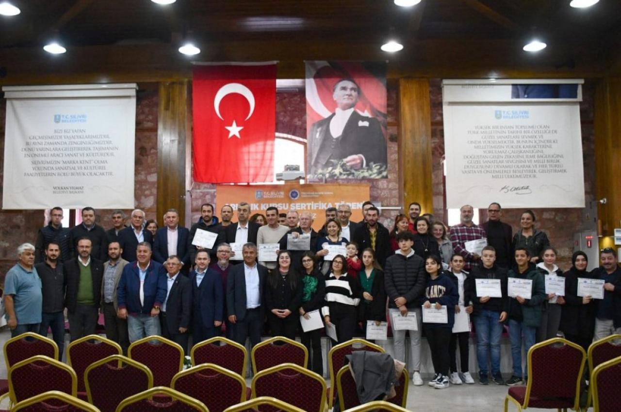 Silivri Belediyesi, ilçede yaşayan vatandaşların bilinçli üretime teşvik edilmesi ve Silivri’nin bir üretim kenti olması adına çalışmalarına hız kesmeden devam ediyor. Bu kapsamda, Silivri Belediyesi Tarımsal Hizmetler Müdürlüğü ve Tekirdağ Namık Kemal Üniversitesi iş birliği ile hayata geçirilen Arıcılık Kursunda 123 kursiyere eğitim verildi. 11 Mayıs 2022’de başlayarak 18 Haziran 2022 tarihine kadar devam eden program kapsamında kursiyerler, Trakya Üniversitesi Öğretim Üyesi Dr. Devrim Oskay eğitmenliğinde 72 saatlik uygulamalı, teorik ve pratik ders gördü. Arıcılık eğitimlerini başarıyla tamamlayan 123 kursiyer için Yaşar Kemal Sergi Salonunda sertifika dağıtım töreni düzenlendi. Gazi Mustafa Kemal Atatürk, silah arkadaşları ve aziz şehitler anısına yapılan saygı duruşu ve okunan İstiklal Marşı ile başlayan tören yapılan konuşmalarla devam etti.