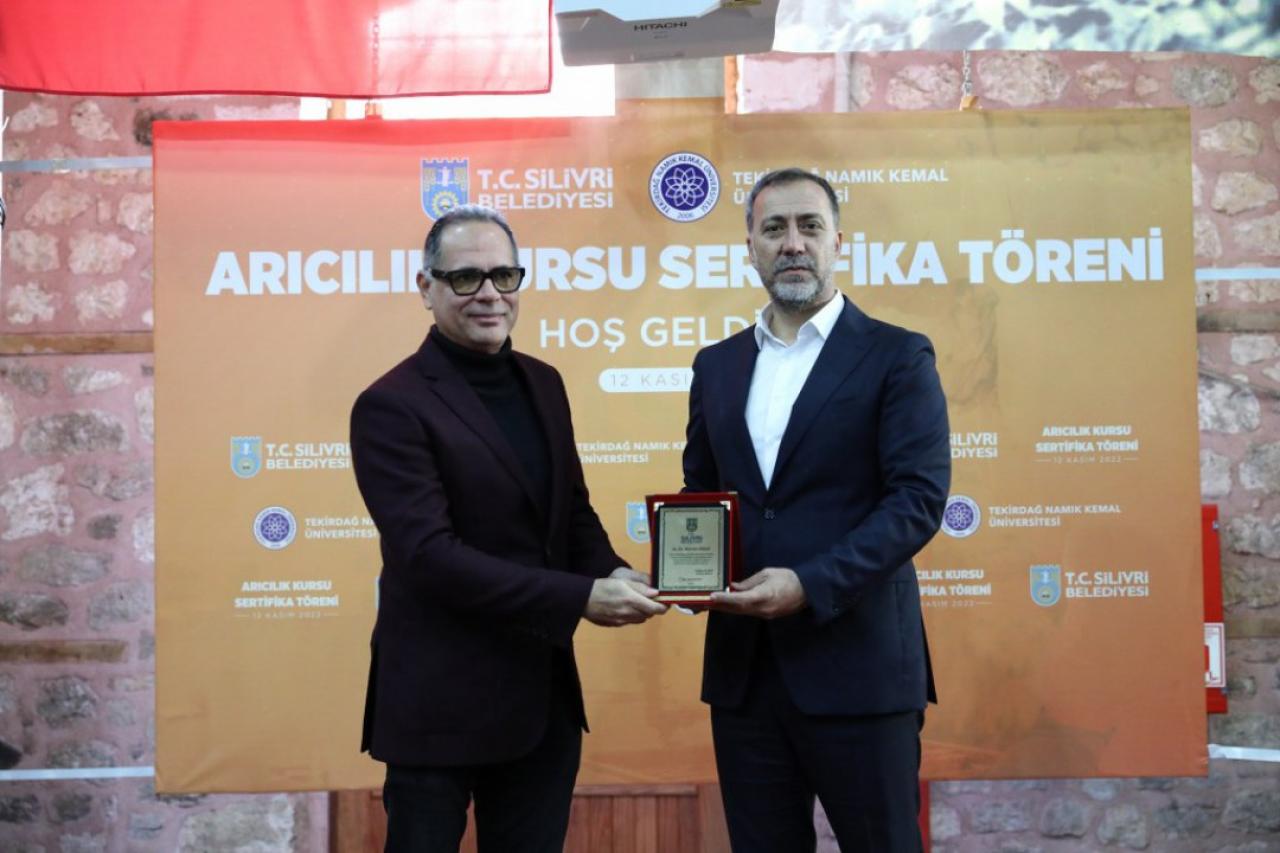 Törenin açılış konuşmasını yapan Trakya Üniversitesi Öğretim Üyesi Dr. Devrim Oskay, “Değerli Silivri Belediye Başkanımız Volkan Yılmaz ve Silivri Belediyemizin çalışanlarına bal arılarına ve arıcılığa verdikleri önem için teşekkür ediyorum. Bal arıları bizim için çok özel canlılar. Bitkilerle aralarında karşılıklı faydaya dayalı bir ilişki var. Bu ilişki sayesinde zirai ürünlerin veriminin ve kalitesinin artmasını sağlıyorlar. Bunun yanında bizlerin sağlıklı ürünlerle beslenmesini de sağlıyorlar. Son yıllarda apiterapi denen bir disiplinle artık arı ürünleri bazı hastalıkların tedavisinde de kullanılıyor. Dünya artık, bal arıları olmadan yaşanamayacağını kabul etmiş durumda. Silivri Belediyesi iş birliğiyle verdiğimiz Arıcılık Kursu, 72 saatlik uygulamalı bir kurstu. Ülkemizde uygulamalı arıcılık kurslarının sayısı çok az. Çünkü altyapı buna uygun değil. Silivri Belediyemizin arılığı var, orada sınıfları var. Hem teorik hem pratik açıdan uygulamanın yapılabileceği bir ortamda kurs vermek benim için çok güzeldi. Bu kursların devam etmesini diliyorum.” dedi.