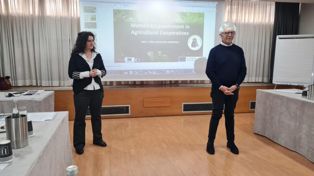 Tarım Kooperatiflerinde Kadının Güçlendirilmesi projesi toplantısında konuşan Legacoop Puglia Kooperatifler Birliği Başkanı Carmelo Rollo, “İtalya ve Avrupa’da çok büyük bir kooperatif birliği ile çalışıyoruz. Bu proje bizim için tarımsal kooperatiflerde dijital yeterliliğin sağlanması ve kadın kooperatiflerinin güçlendirilmesi açısından oldukça önemli. Sizlerle çalışmaktan büyük mutluluk duyuyor ve bir arada olmamızın bizim için şans olacağını düşünüyoruz. Yalnız olursak bir şansımız olmaz ama birlikte olursak bazı şeyleri geliştirebiliriz.” dedi.