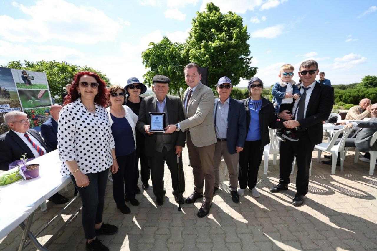 Ayrıca Başkan Balcıoğlu, konuşmasının ardından Gümüşyaka'nuın en yaşlı çiftçisi Mehmet Ahlatçıoğlu'na plaket taktim etti