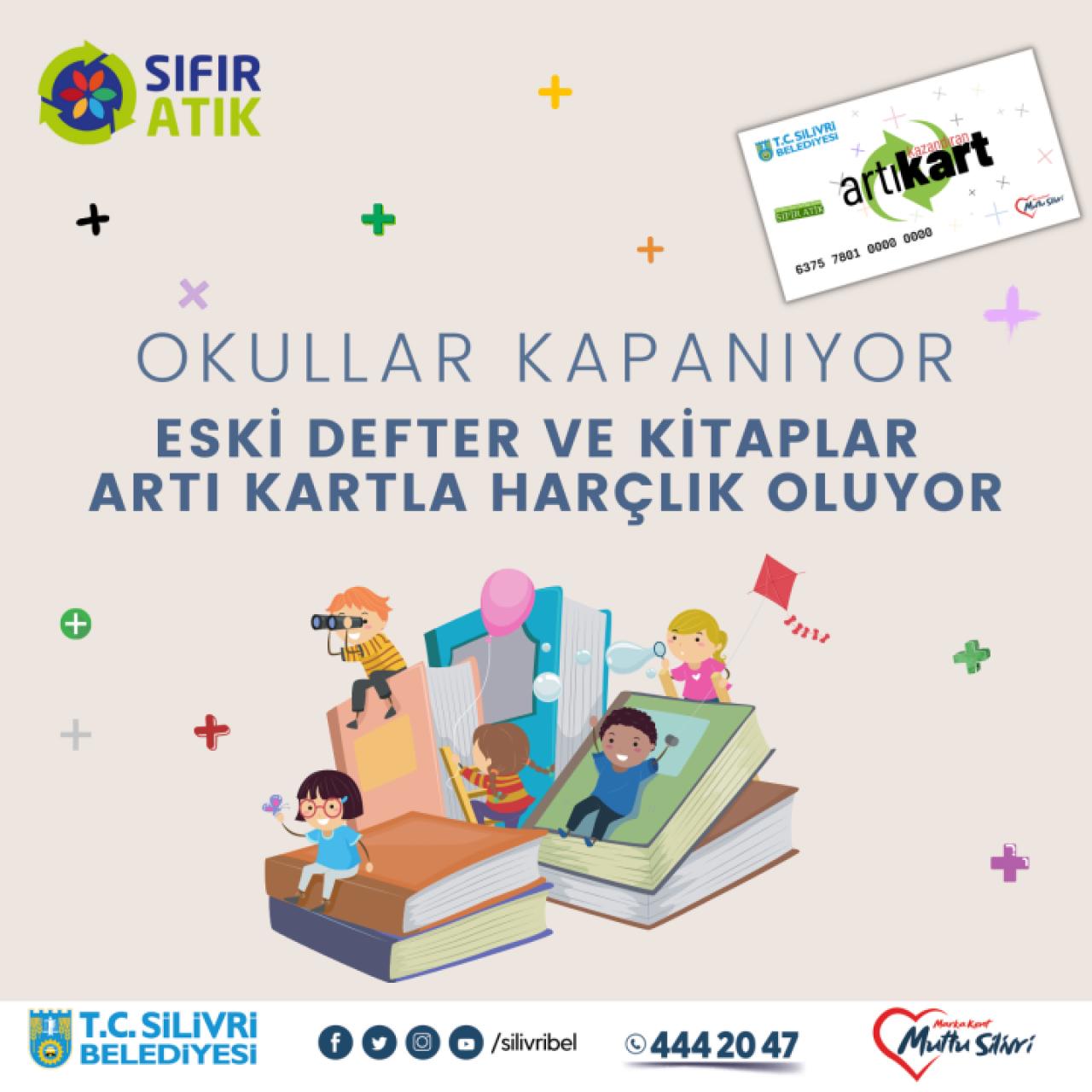 Silivri Belediyesi, 2022/2023 eğitim öğretim döneminin sona ermesiyle birlikte kullanılmayan defter ve kitapların geri dönüşüme kazandırılması için harekete geçti. Eski defter ve kitaplarını Silivri Belediyesinin Artı Kart aracına teslim eden Silivrililer, malzemelerin ağırlığı kadar para-puan kazanacak. Artı Kart’lara yüklenen para-puanlar, market alışverişlerinde kullanılabilecek. Silivri Belediyesi bu etkinlik ile hem ormanları ve doğayı korumayı hem de ekonomiye pozitif yönde katkı sağlamayı hedefliyor. Daha detaylı bilgi almak isteyen Silivrililer https://atikyonetimi.silivri.bel.tr/ adresini ziyaret ederek bilgi alabilirler.