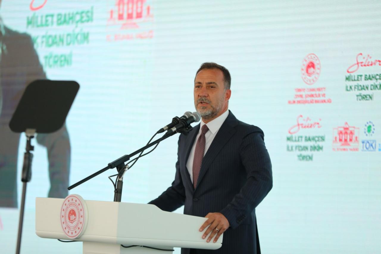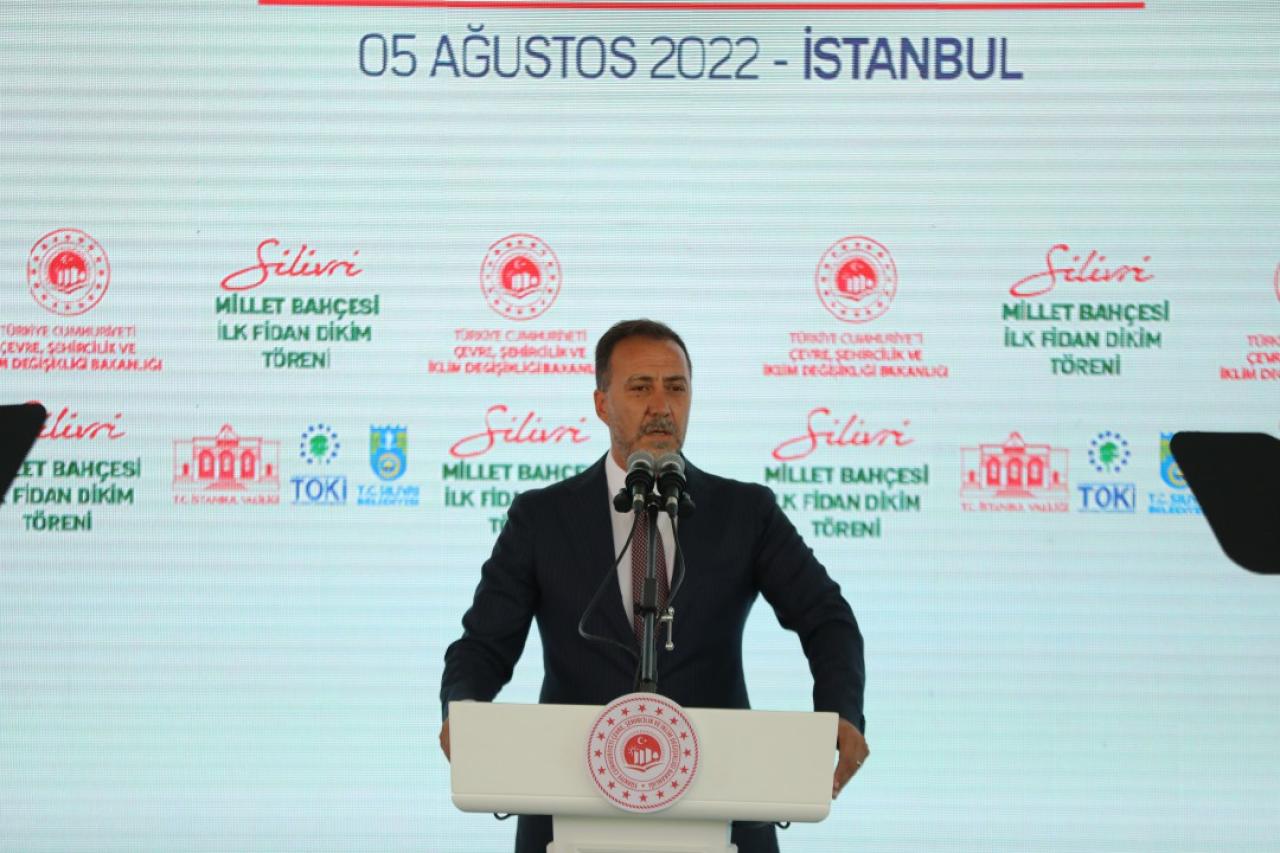 Törenin kapanış konuşmasını yapan Çevre, Şehircilik ve İklim Değişikliği Bakanı Murat Kurum, “Silivri İstanbul’umuzun Trakya’ya açılan kapısıdır. Silivri gürgen, kayın ve ardıç ağaçlarıyla İstanbul’un ormanlarının efendisidir. İstanbul’daki saklı cennet bahçelerimizin en önemlilerinden biridir. Silivri Belediye Başkanımız Volkan Yılmaz, bu güzel kent için her türlü hizmeti yapmaya gayret gösteriyor ve bu manada gerek bizimle gerek diğer bakanlıklarımızla çeşitli çalışmalar gerçekleştiriyor. Bugün Silivri’de bizim Millet Bahçesi diye tabir ettiğimiz ama aslında bir yaşam merkezi, buluşma merkezi, birlik merkezimizin ilk fidanını toprakla buluşturuyoruz. Silivri’den istikbale uzanan ağaçlar yetiştirmek için bu ağaçlara gözümüz gibi bakacağız. Biz, millet bahçelerimizi sıradan bir bahçe olarak değil tam aksine atalarımızdan gelen bahçe kültürümüzün bir işareti olarak görüyoruz. Yaptığımız ve yapacağımız projelerle Silivri’mizin yeşiline yeşil katmaya, güzelleşmesine, ekonomisine, istihdamına ve gençlerimizin geleceğe umutla bakmasına katkı sağlayacağız. Silivri Millet Bahçemizin hayırlı uğurlu olmasını diliyor, hepinize saygılarımı ve sevgilerimi sunuyorum.” dedi.