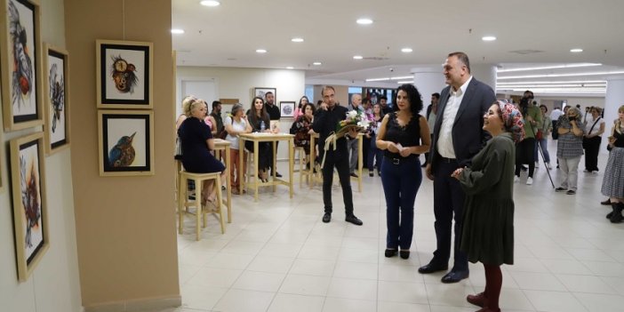 Çiçeği kabul eden Nesrin Demirbilek ise ilk kişisel sergisini Kartal Belediyesi’nde yapmaktan dolayı duyduğu memnuniyeti belirtirken, Başkan Gökhan Yüksel’e ve ekibine kendisine bu fırsatı sundukları için teşekkür etti.