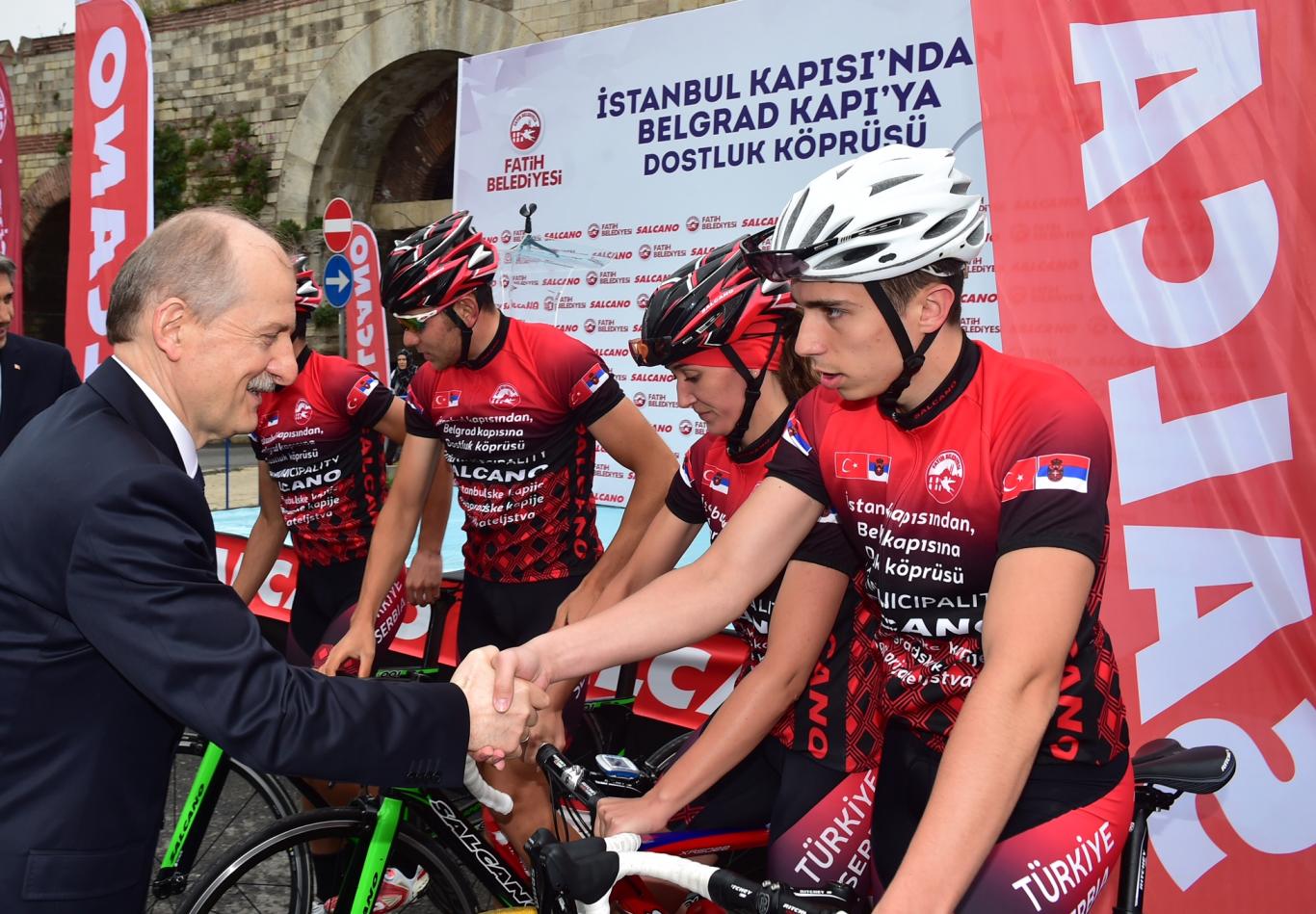 Bu vesileyle Sırbistan’ın Belgrad başkentinin İstanbul Kapısından İstanbul’un Belgradkapısı’na 9 gün önce yola çıkan 2’si Türk 2’si Sırp 4 bisikletçi, yaklaşık 1000 kilometrelik bir yolu kat ederek İstanbul Belgradkapısı’ na ulaştılar. Bizde onları büyük bir mutlulukla karşıladık. Fatih Belediyesi olarak dostluğumuzun ebediyen sürdürülmesi temennisiyle bu organizasyonda emeği geçen Salcano bisiklet firmasının yönetim kurulu temsilcisi Bayram Akgül’e teşekkür ediyoruz. Bu tür dostluklara vesile olmak dünya barışı için çok faydalıdır. Bunların devamını diliyorum" diye konuştu.