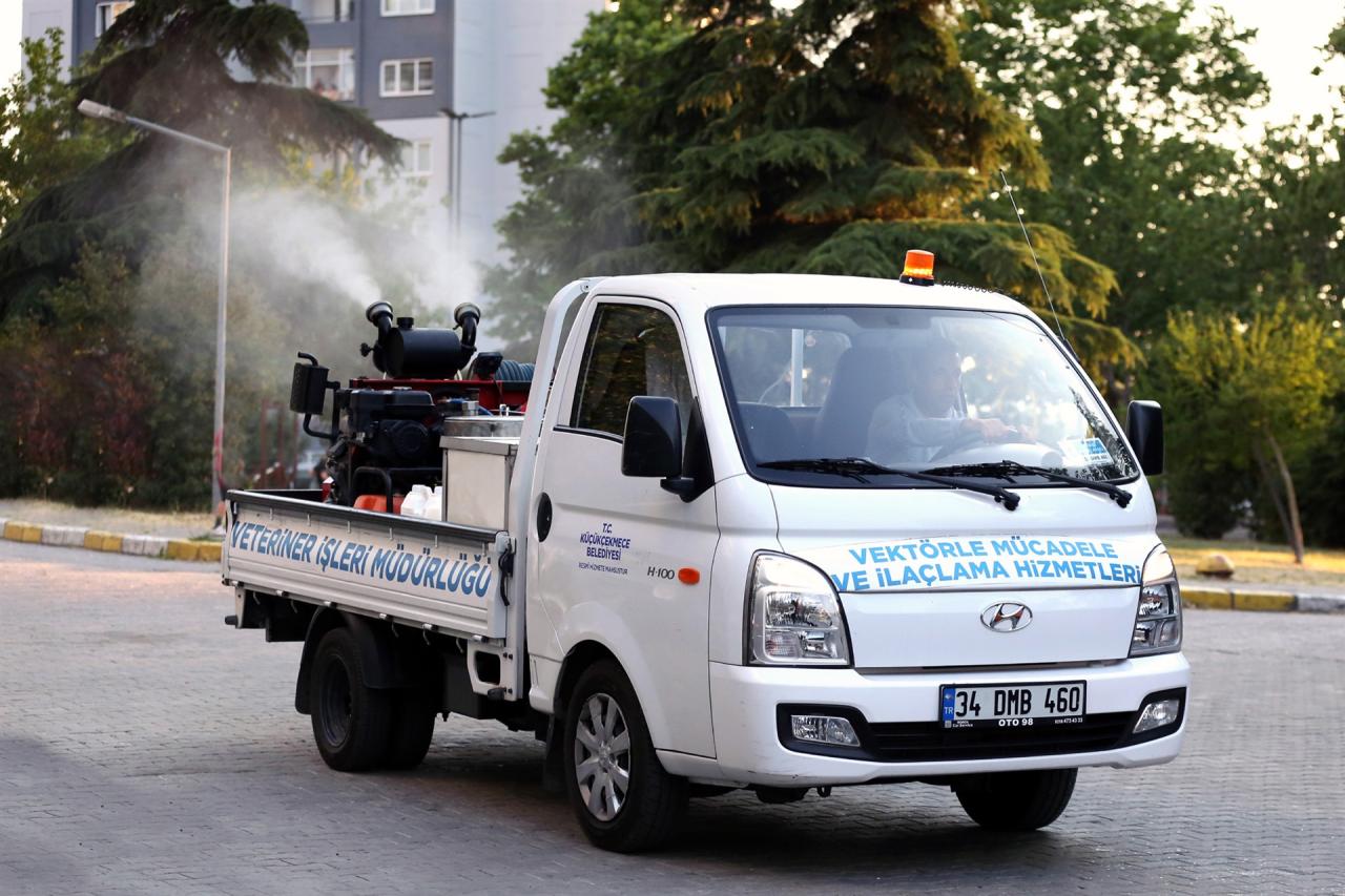 Küçükçekmece Belediyesi sıcak havanın etkisiyle artış gösteren sivrisinek ve haşere sorununa karşı ilçe genelinde kapsamlı bir ilaçlama çalışması yürütüyor. Veteriner İşleri Müdürlüğü ekipleri, yıl boyunca sürdürülen larva mücadelesiyle birlikte haziran ayı itibarıyla da sivrisinek, karasinek vb. uçkunlara karşı gece ilaçlamalarına başladı.
