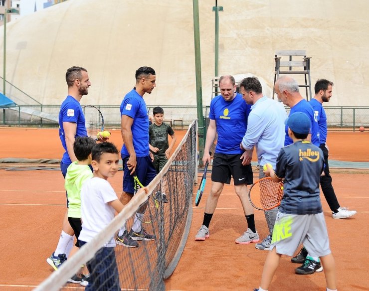 Fenerbahçe'nin İspanyol golcüsü Roberto Soldado ve Faslı oyuncusu Nabil Dirar, otizme dikkat çekmek amacıyla, otizmli çocuklarla tenis kortuna çıktı ve gösteri maçında oynadı.