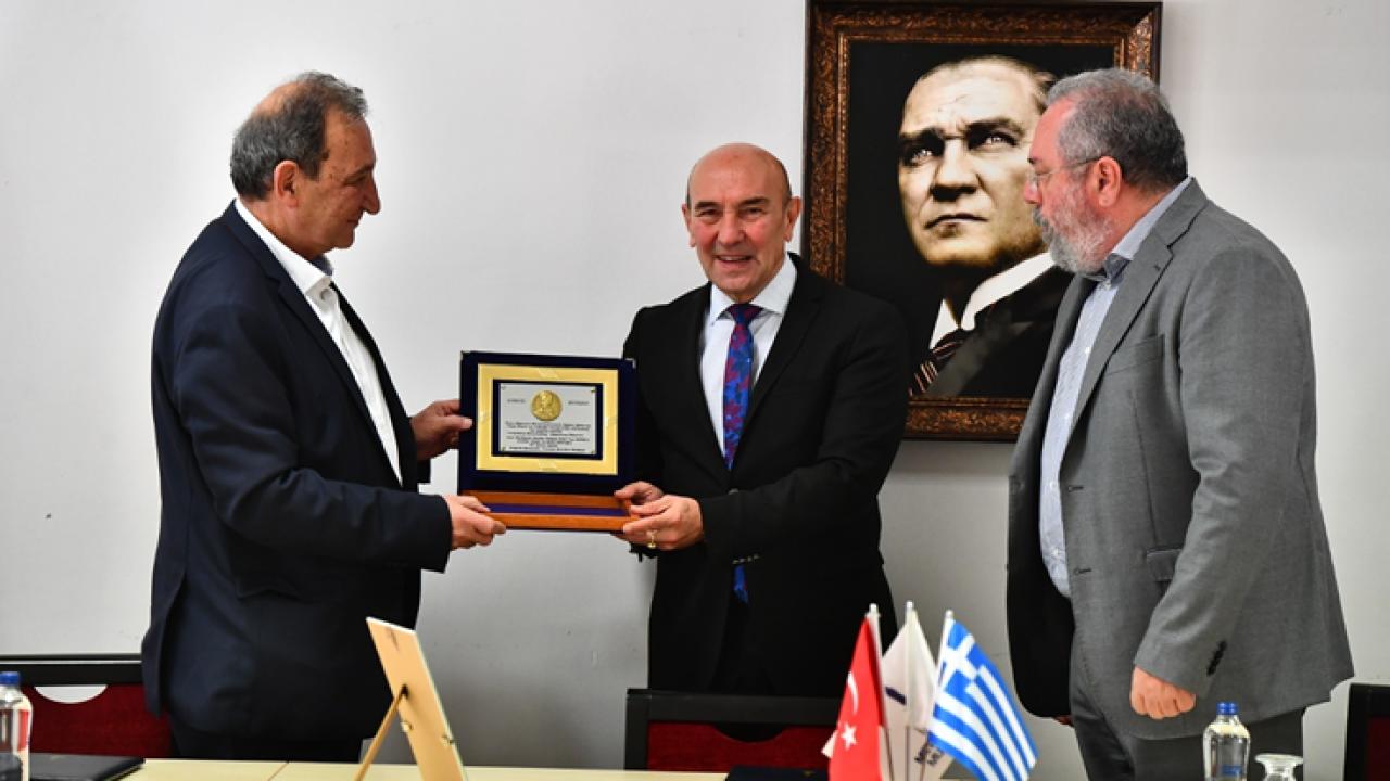 İzmir Büyükşehir Belediye Başkanı Tunç Soyer Yunanistan’ın Attika bölgesindeki Vyronas’ın Belediye Başkanı Grigoris Katopodis ve Kesariani’nin Belediye Başkanı Christos Voscopoulos ile Ahmed Adnan Saygun Sanat Merkezi’nde bir araya gelerek “Dostluk ve İşbirliği Beyanı” imzaladı. İmza töreninde Ege Barış ve İletişim Derneği Başkanı Bülent Tanık da yer aldı.