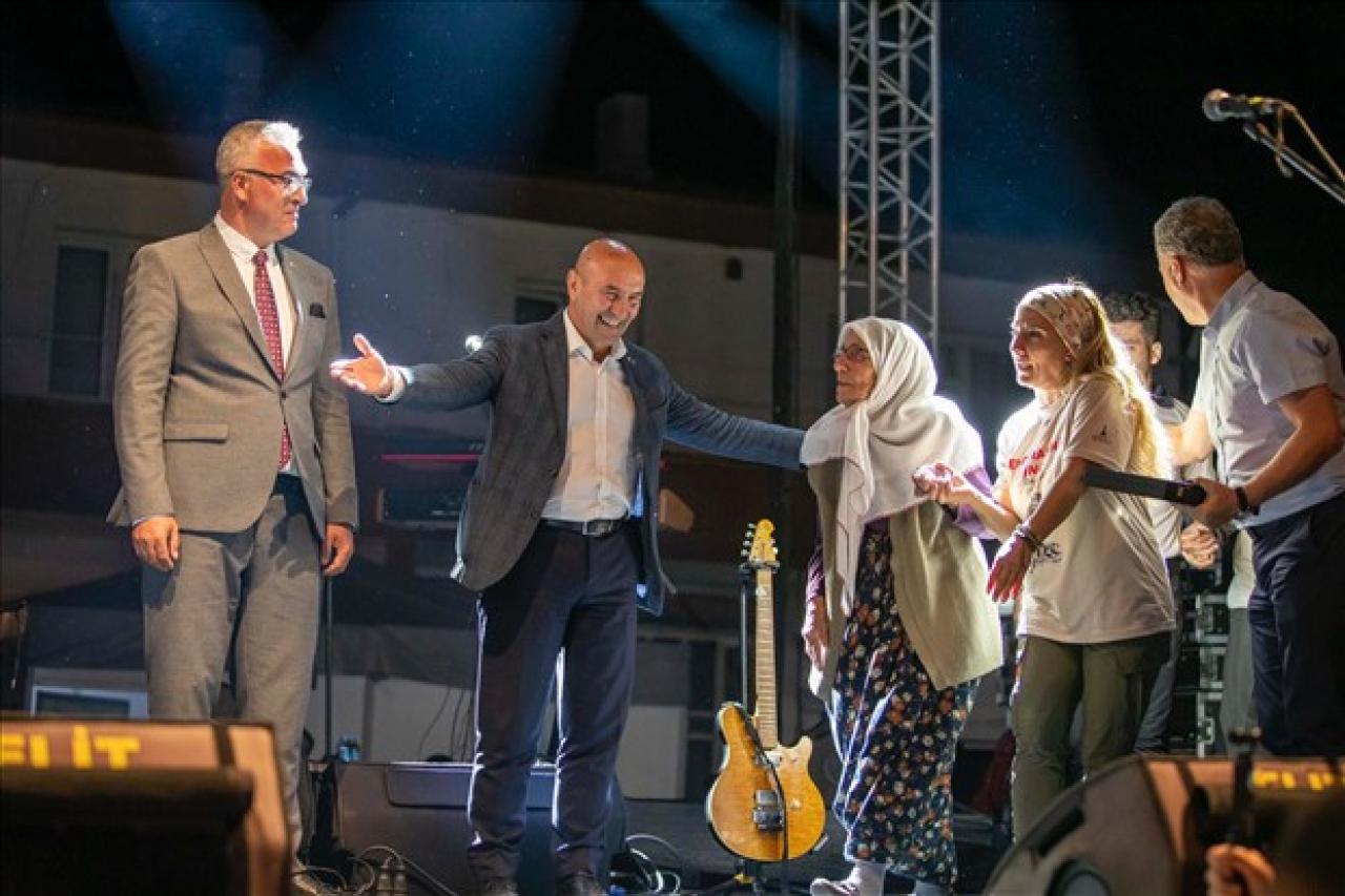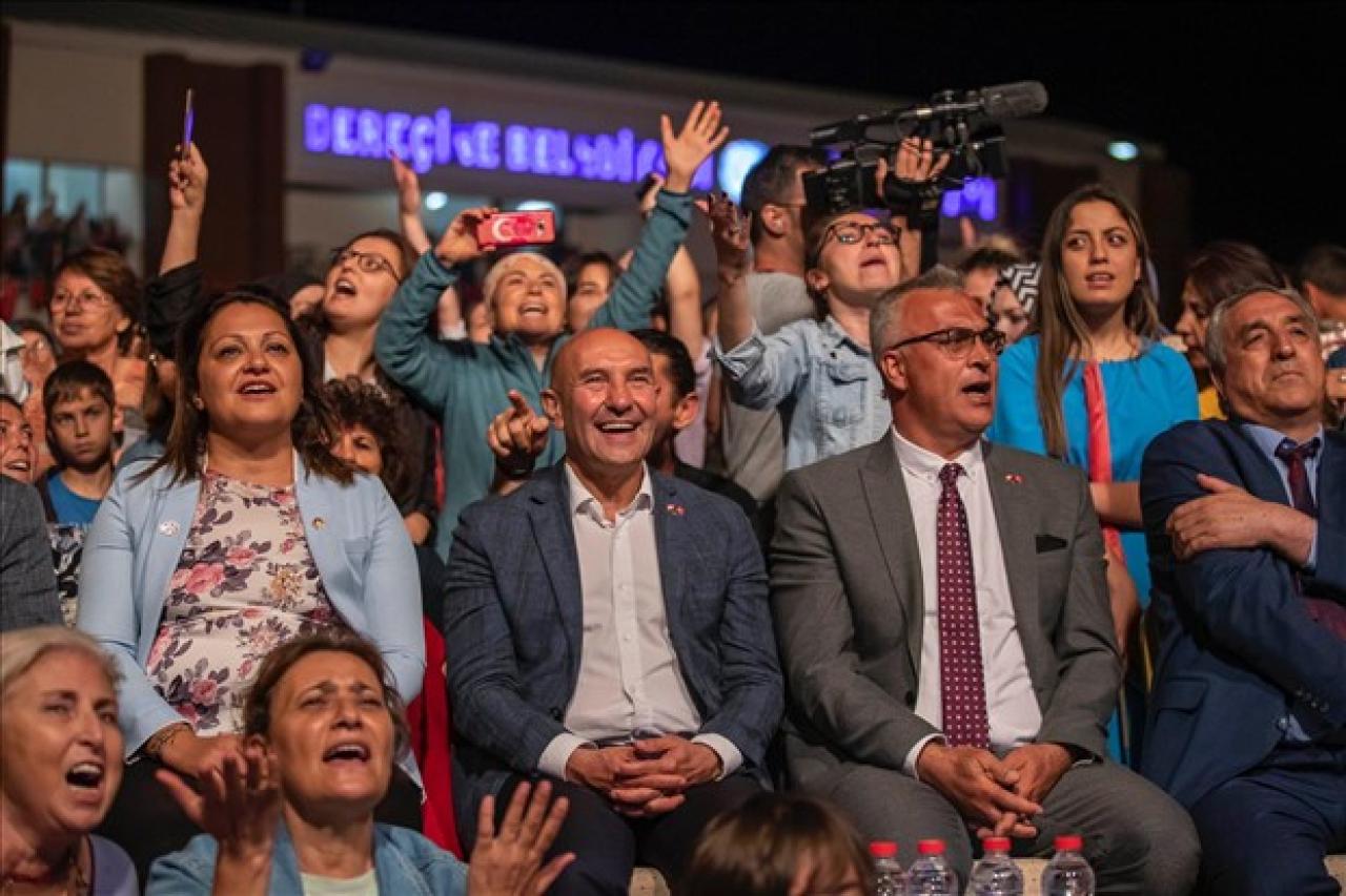 Söyleşinin ardından konuşan Afyon Dereçine Belediye Başkanı Ömer Yıldız, “Dereçine'miz bu çapta organizasyonu yapabilecek büyüklükte değil. İzmir Büyükşehir Belediyesi ve İzmir Büyükşehir Belediye Başkanı Tunç Soyer bu organizasyonun ev sahibidir. Burada yapılanların ev sahibidir. Sayın Tunç Soyer Dereçine'dir” ifadelerini kullandı. Dereçineli Naci Dede ve Lütfiye Bozkurt, 9 Eylül'de İzmir'e ulaştırılmak üzere kafilenin taşıyacağı Türk bayrağını yürüyüşçülerden Beyza Fincan ile Ümit Güner Dedeoğlu'na teslim etti. Lütfiye Bozkurt'un Atatürk ile ilgili okuduğu şiir büyük alkış aldı. Söyleşinin ardından sahneye önce DJ Yarkın Bora, sonra ise ünlü sanatçı Haluk Levent çıktı. Gece, Türk bayrakları eşliğinde hep bir ağızdan söylenen İzmir Marşı ile sona erdi.