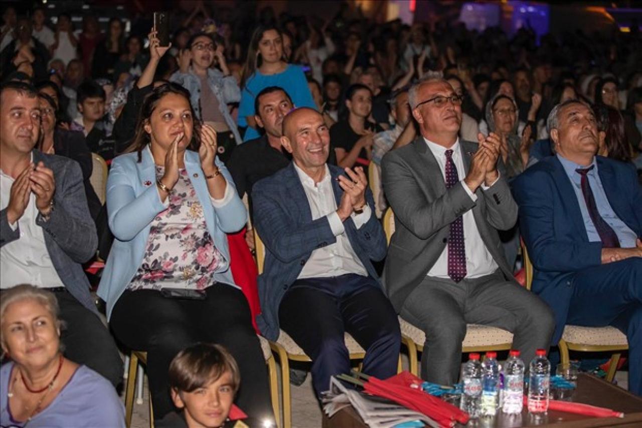 Ulu Önder Mustafa Kemal Atatürk'ün bir barış insanı olduğunu belirten İzmir Büyükşehir Belediye Başkanı Tunç Soyer, “Biz yalın ayak ölüme koşan, canını kanını dökerek memleketi bizlere bırakan ataların evlatlarıyız. Onların çektikleri yanında bizim bugün çektiklerimiz ne ki… Elbette bunları da atlatacağız. Çünkü Atamızın izinden yürümeye devam edeceğiz. Cumhuriyet’in ikinci yüzyılını demokrasi, adalet, özgürlük ve barışla taçlandıracağız” dedi. Bu bereketli toprakların üzerinde yaşayan herkesi refahla buluşturacak güce sahip olduğunu belirten Başkan Tunç Soyer sözlerini şöyle sürdürdü: “Yeter ki hırsızlık, haramilik olmasın. Atalarımızın izinde bu akşam yürümeye başlayacağız. Atalarımızın bıraktığı mirasa sahip çıkmak ve bizden sonraki kuşaklara aynen emanet etmek gibi bir sorumluluğumuz var. Bu milletin basiretli, sağduyulu, güzel insanları sizlere güveniyorum. Hep beraber çok daha güzel bir memlekette el ele, kol kola güler yüzle yaşayacağız. Göreceksiniz o memleketi hep beraber kuracağız. Yolumuz açık olsun” diye konuştu.