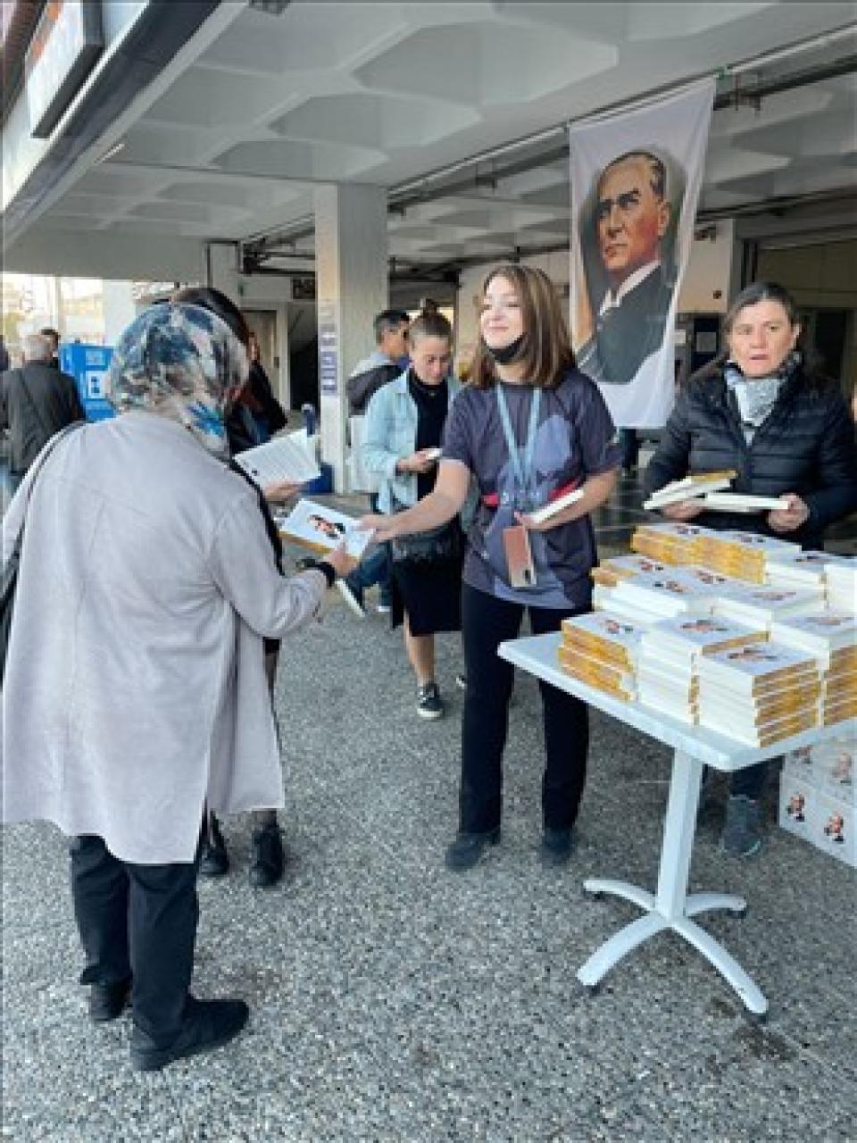İzmir Büyükşehir Belediyesi’nin ulu önder Mustafa Kemal Atatürk’ün vefatının 84’üncü yıl dönümü için hazırladığı anma programı kapsamında yurttaşlara 10 binin üzerinde Nutuk kitabı dağıtıldı. “Kurduğun Gelecek Bize Emanet” sloganıyla İZELMAN tarafından bastırılan Mustafa Kemal Atatürk’ün Nutuk kitabı sabah saat 08.30-09.30 saatleri arasında kentin 16 farklı noktasında İzmirliler ile buluşturuldu.